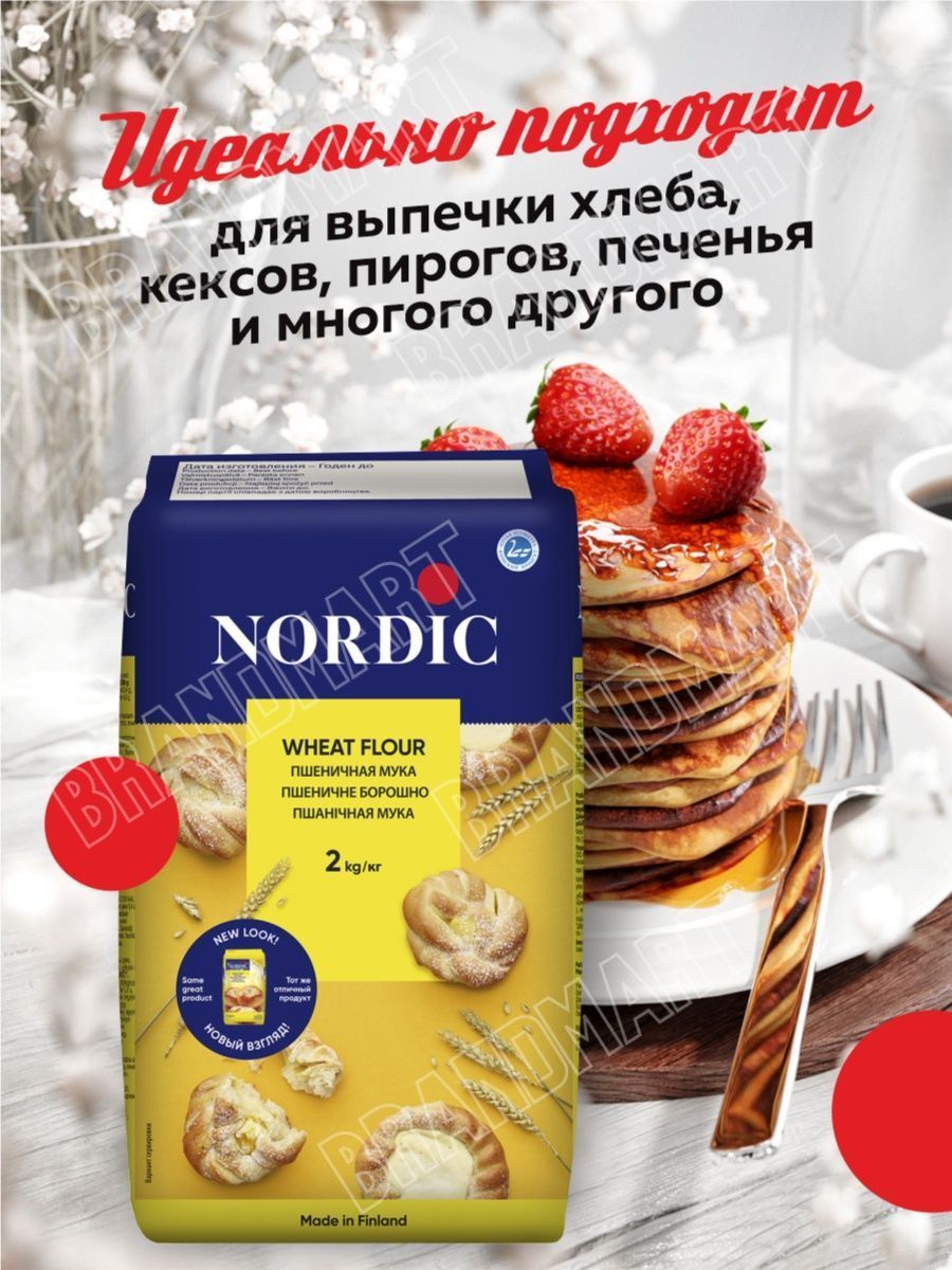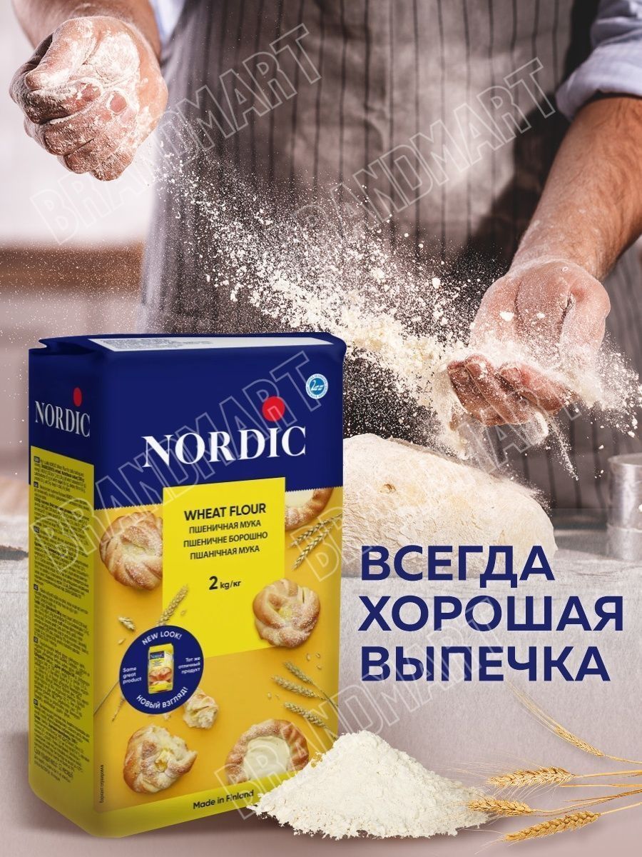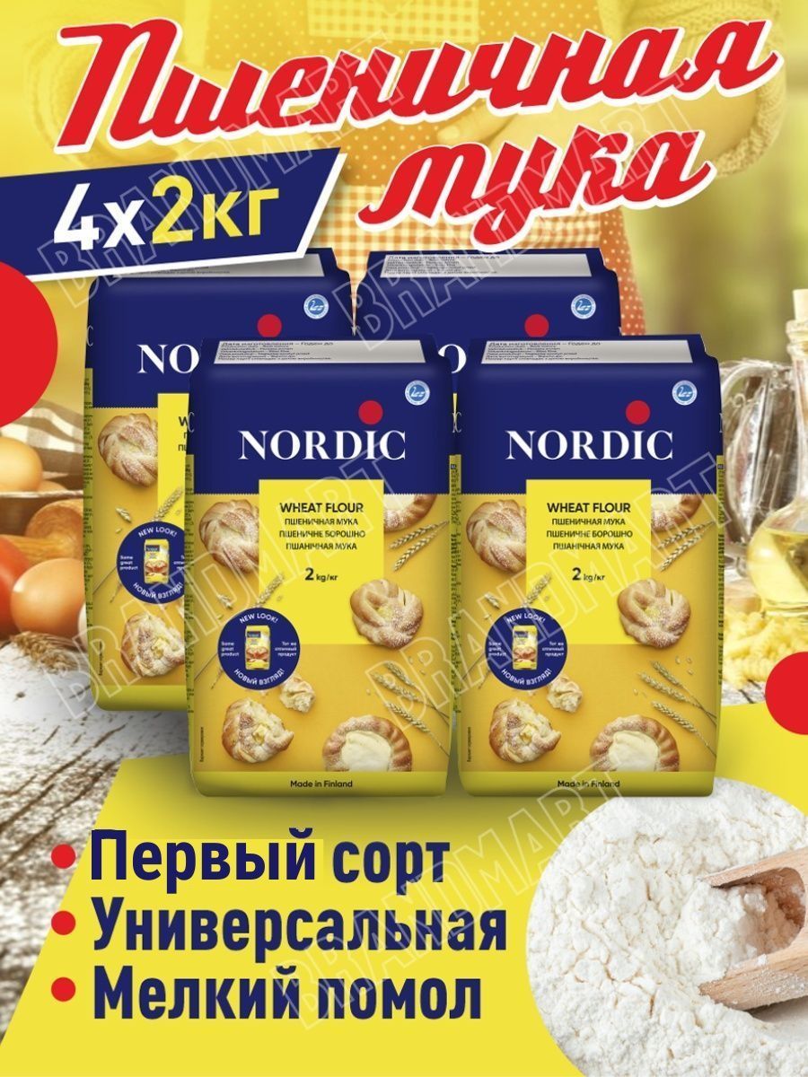 Мука пшеничная хлебопекарная 2кг нордик для выпечки хлеба, печенья, кексов и тортов, 4 пакета