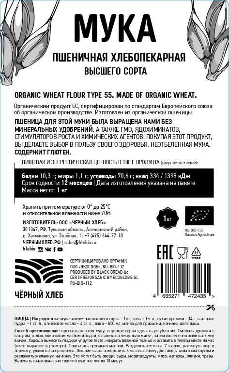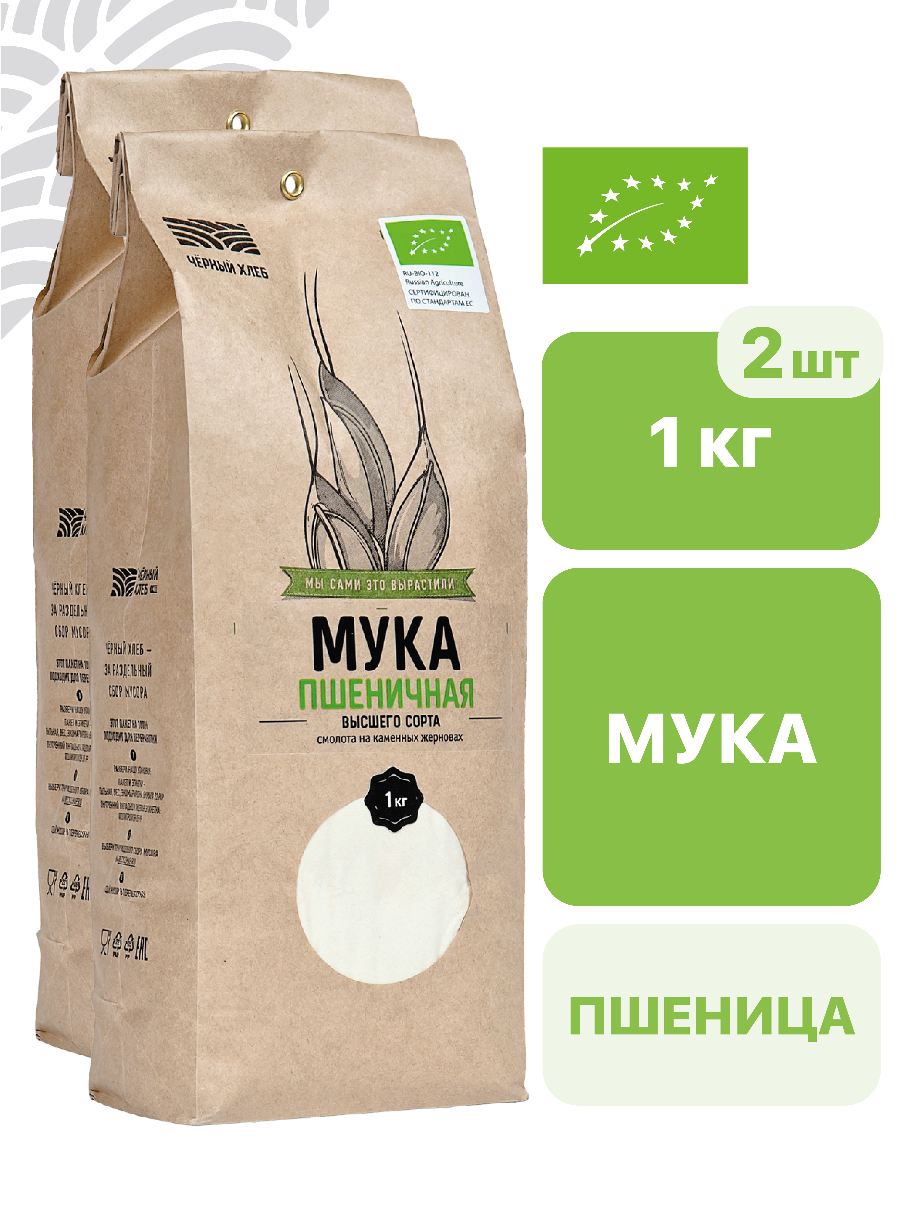 Мука пшеничная хлебопекарная высшего сорта, Черный хлеб, 2 шт х 1 кг