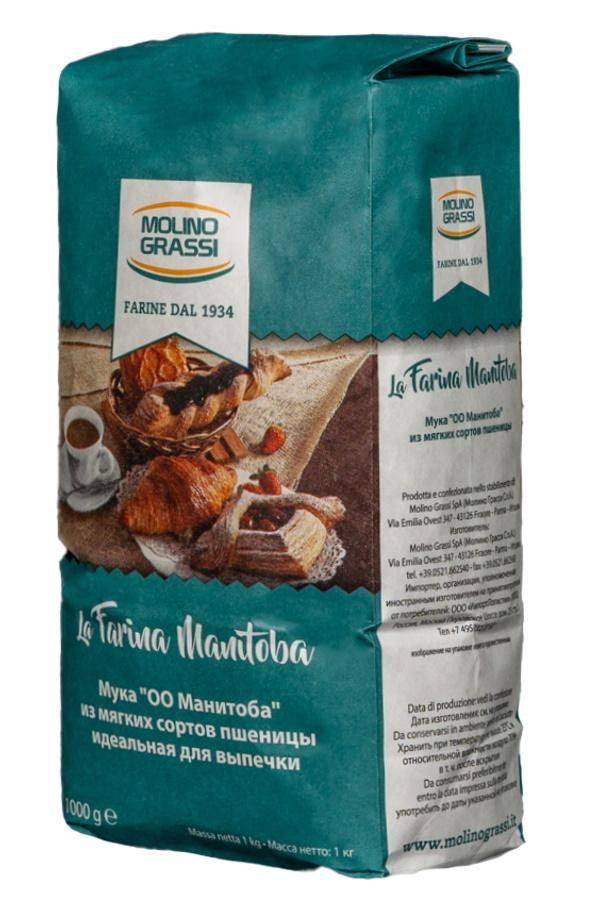 Мука пшеничная из мягких сортов пшеницы Манитоба - исключительно сильная мука, полученная путем смешивания лучших твёрдых зёрен, перемолотых по особой передовой технологии. Она обычно используется в качестве добавки, для увеличения содержания белка и для улучшения ферментативной активности, которая прогрессирует в течение длительной обработки теста. Мука идеально подходит для приготовления хлебобулочных изделий, тесто в которых должно подниматься.