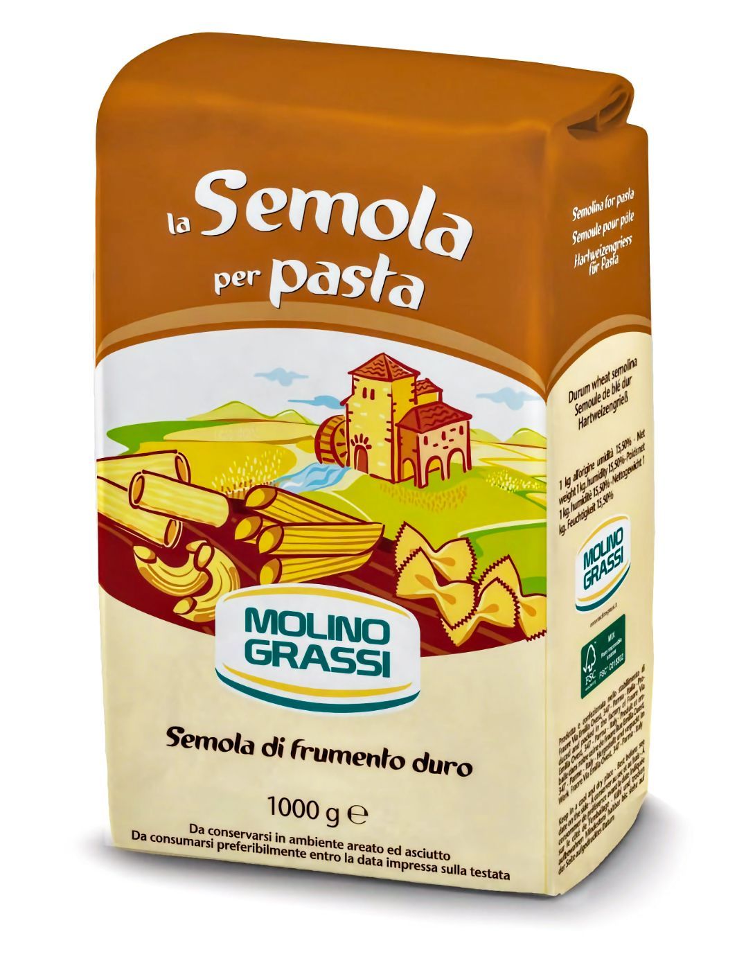 Semola для пасты Молино Грасси – это специфическая крупнозернистая крупа для приготовления яичных макарон и всех видов домашней пасты. Тальятелле, феттучини, листы для лазаньи или тортеллини будут иметь исключительную структуру, если готовить их из semola (вместо муки из мягких сортов пшеницы). Фактически, Molino Grassi для пасты и макаронных изделий получается путем измельчения высококачественной твердой пшеницы, что придает изделиям большую плотность, а также необыкновенный аромат.
