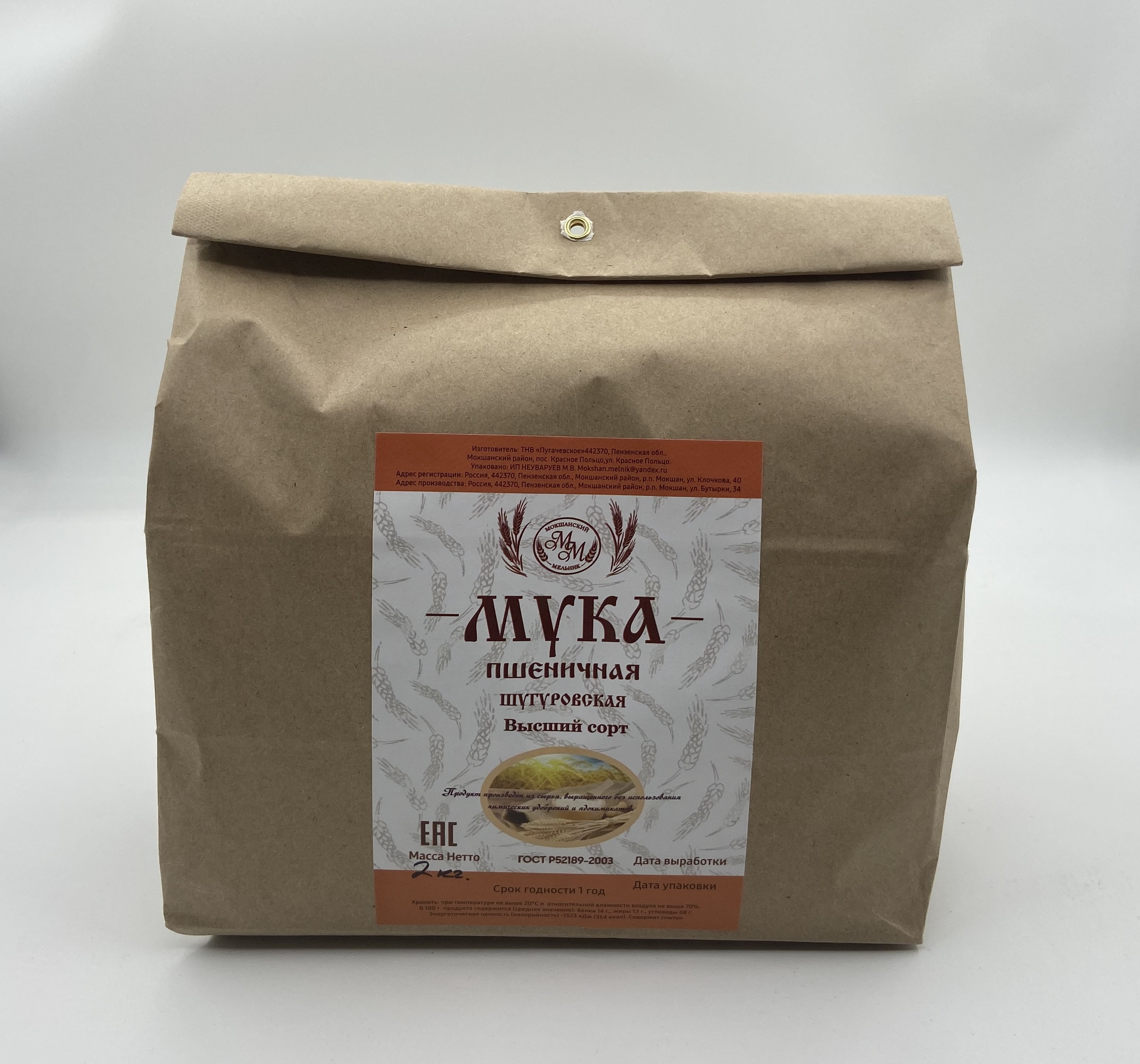 Мука пшеничная высшего сорта из Шугуровского зерна, пакет 2 кг