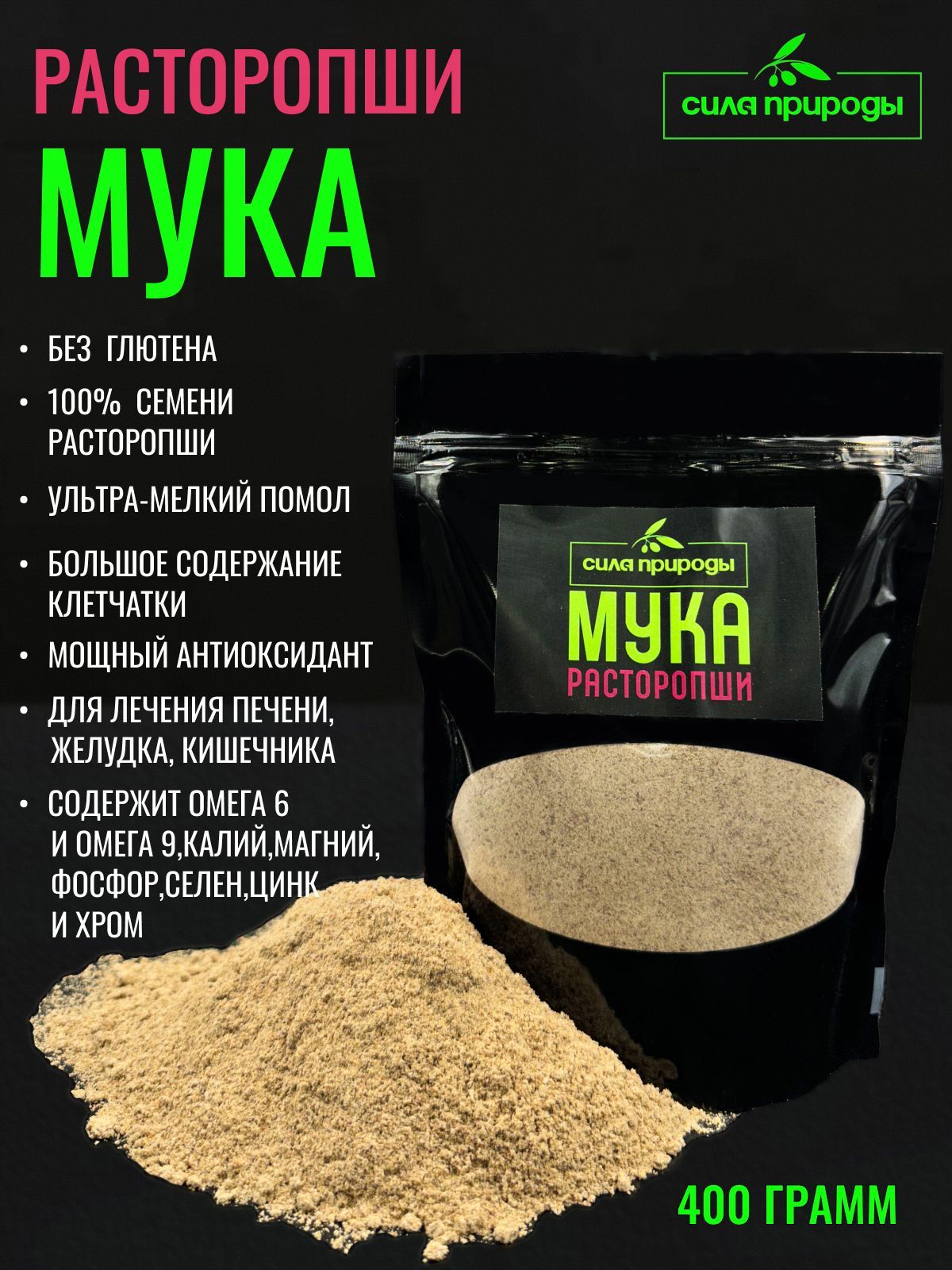 Мука расторопши ультра мелкого помола из семени расторопши без глютена, 400 гр