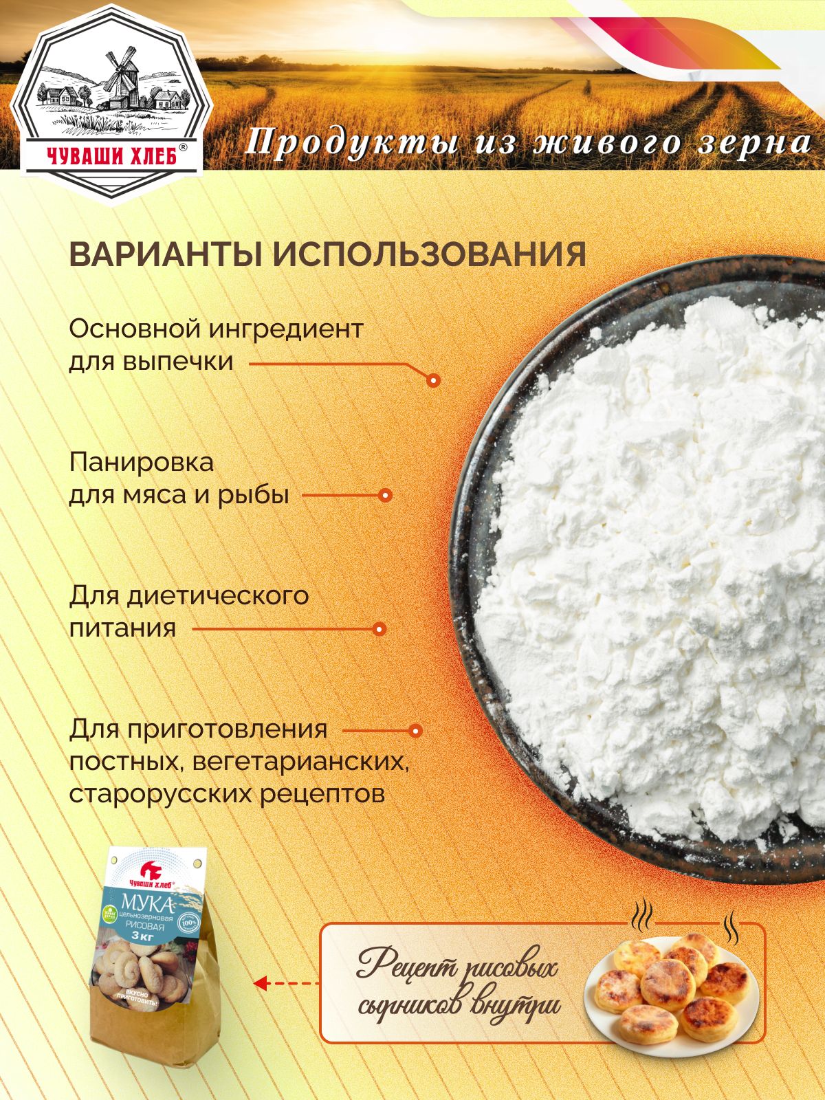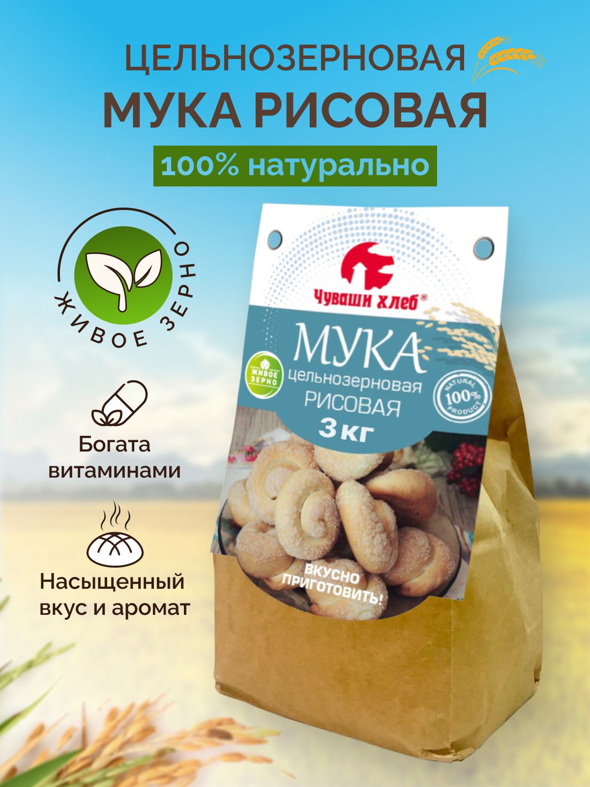 Мука рисовая, Чуваши Хлеб, 3кг, цельнозерновая, для диетического питания, правильного питания