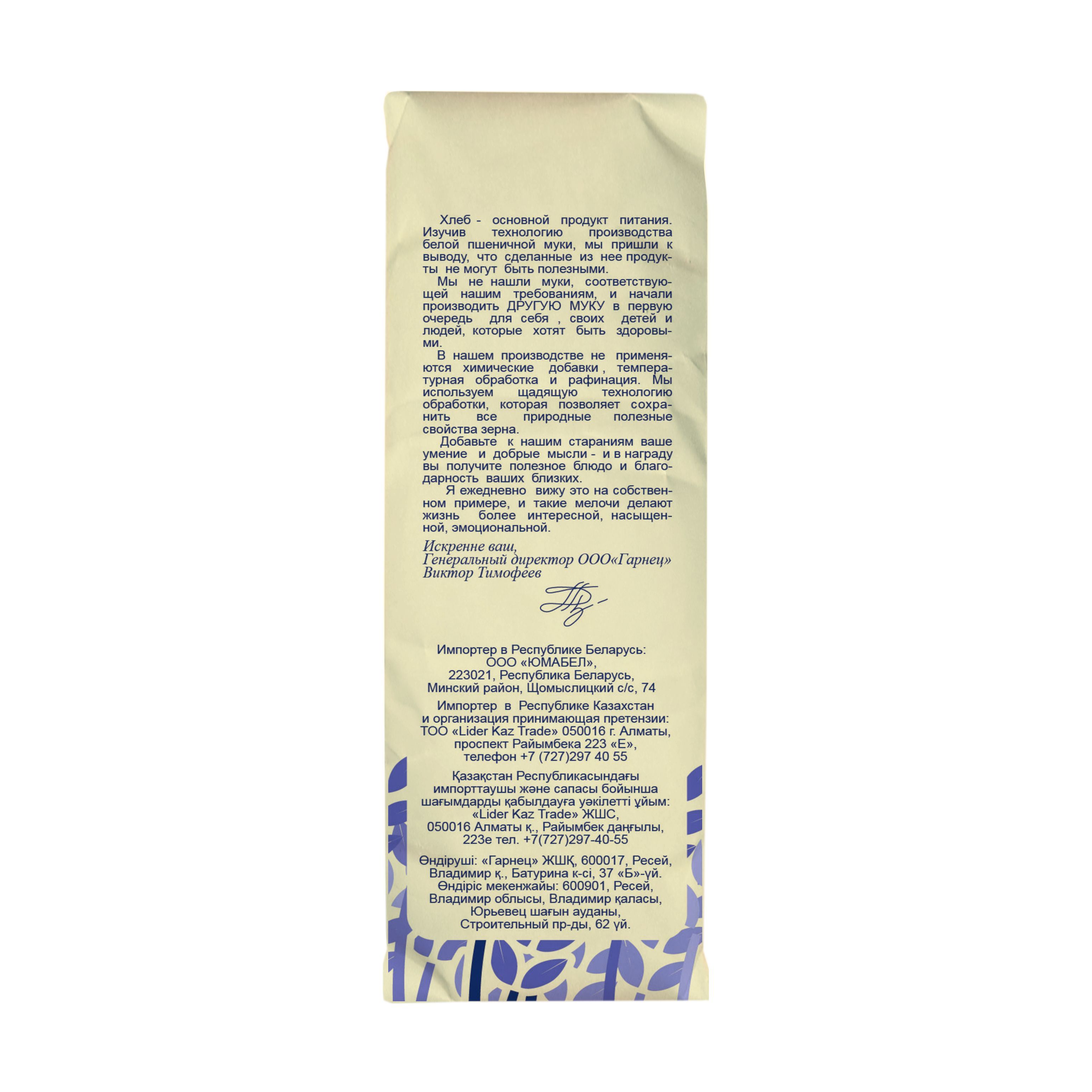 Описание: При производстве нашей продукции мы используем технологию "Холодного помола" - это помол при температуре менее 40°C, благодаря которому мука сохраняет максимум витаминов и минеральных веществ.
