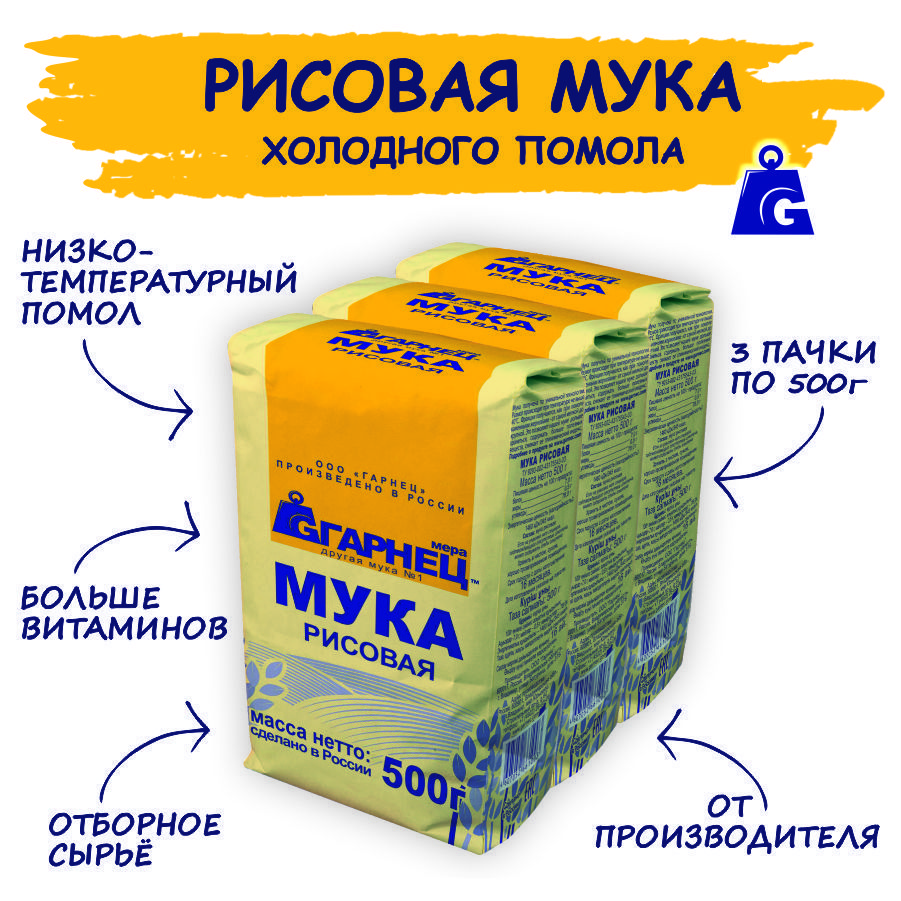 Мука рисовая Гарнец 3 шт по 500 гр