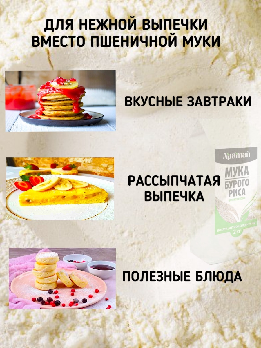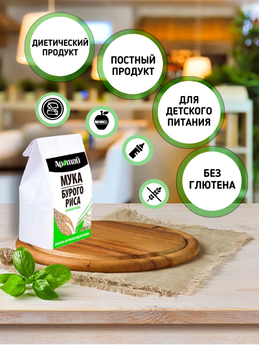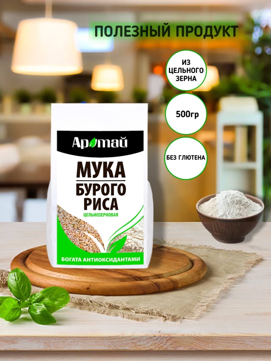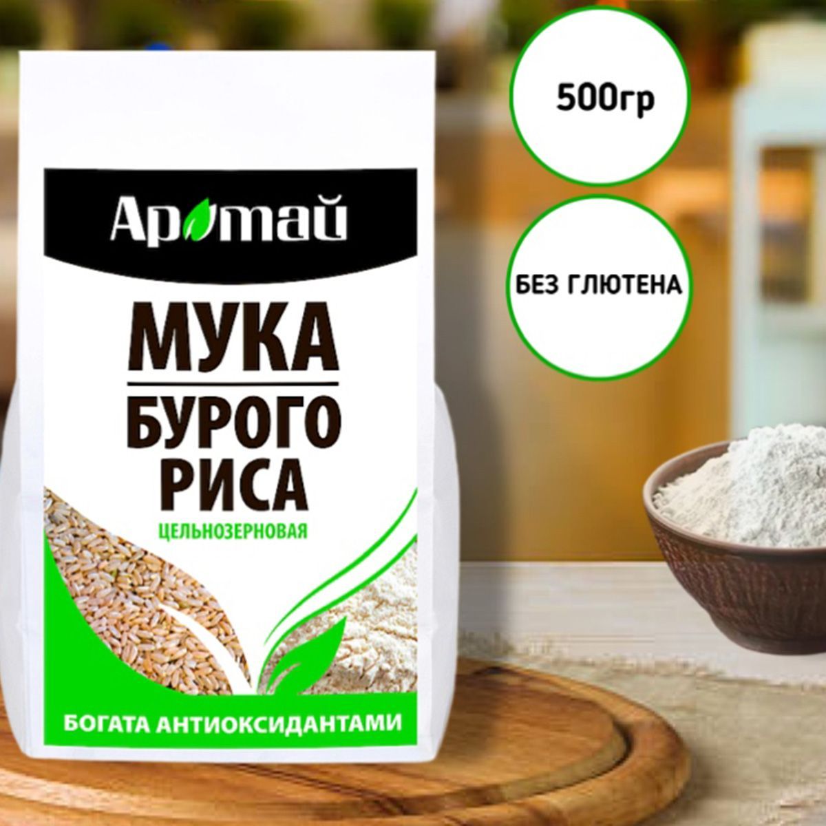 Мука рисовая из бурого риса цельнозерновая, диетическая, здоровое питание, вегетарианская, для похудения, АРАТАЙ, 500 гр.