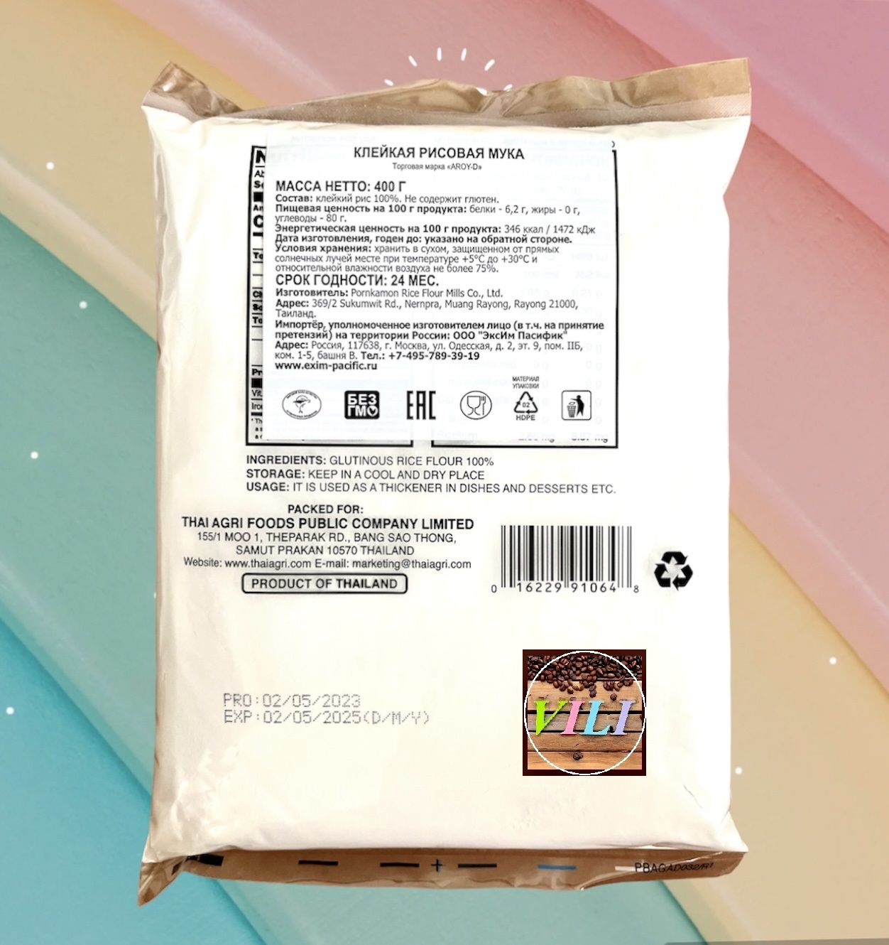 Мука рисовая клейкая для моти, токпокки, десертов, выпечка AROY-D, 2шт по 400 гр