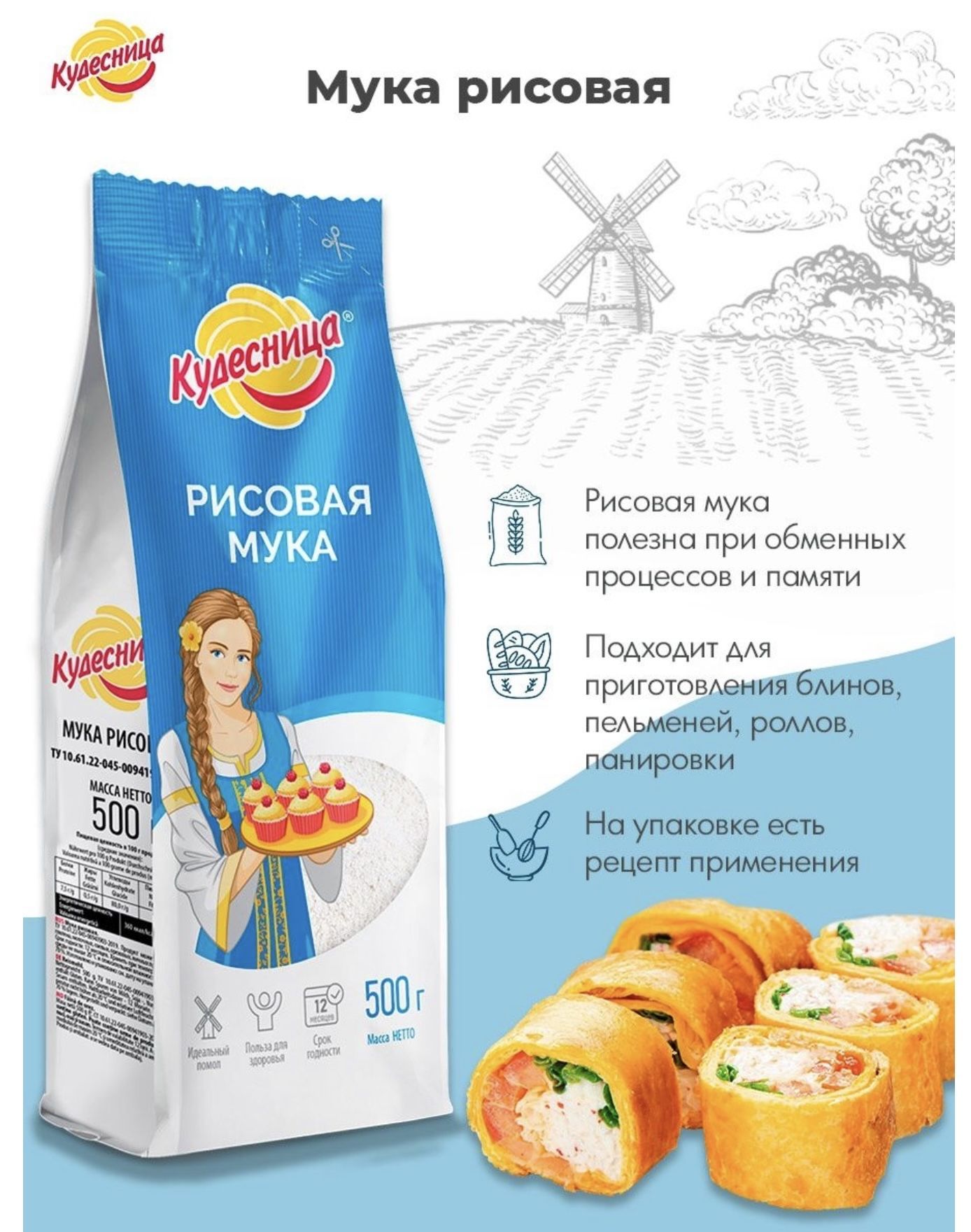 Описание: Мука из зерна риса - источник широкого спектра природных микроэлементов, витаминов и минеральных веществ, что делает рисовую муку исключительно полезной для питания людей всех возрастов, и особенно детей.