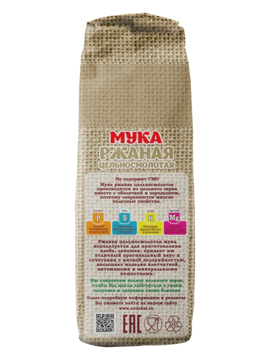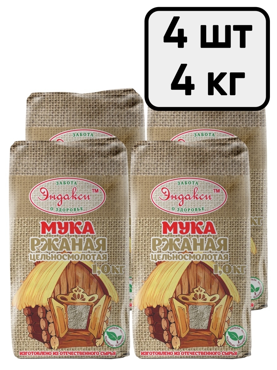 Мука Ржаная цельносмолотая Эндакси, 1 кг - 4 шт