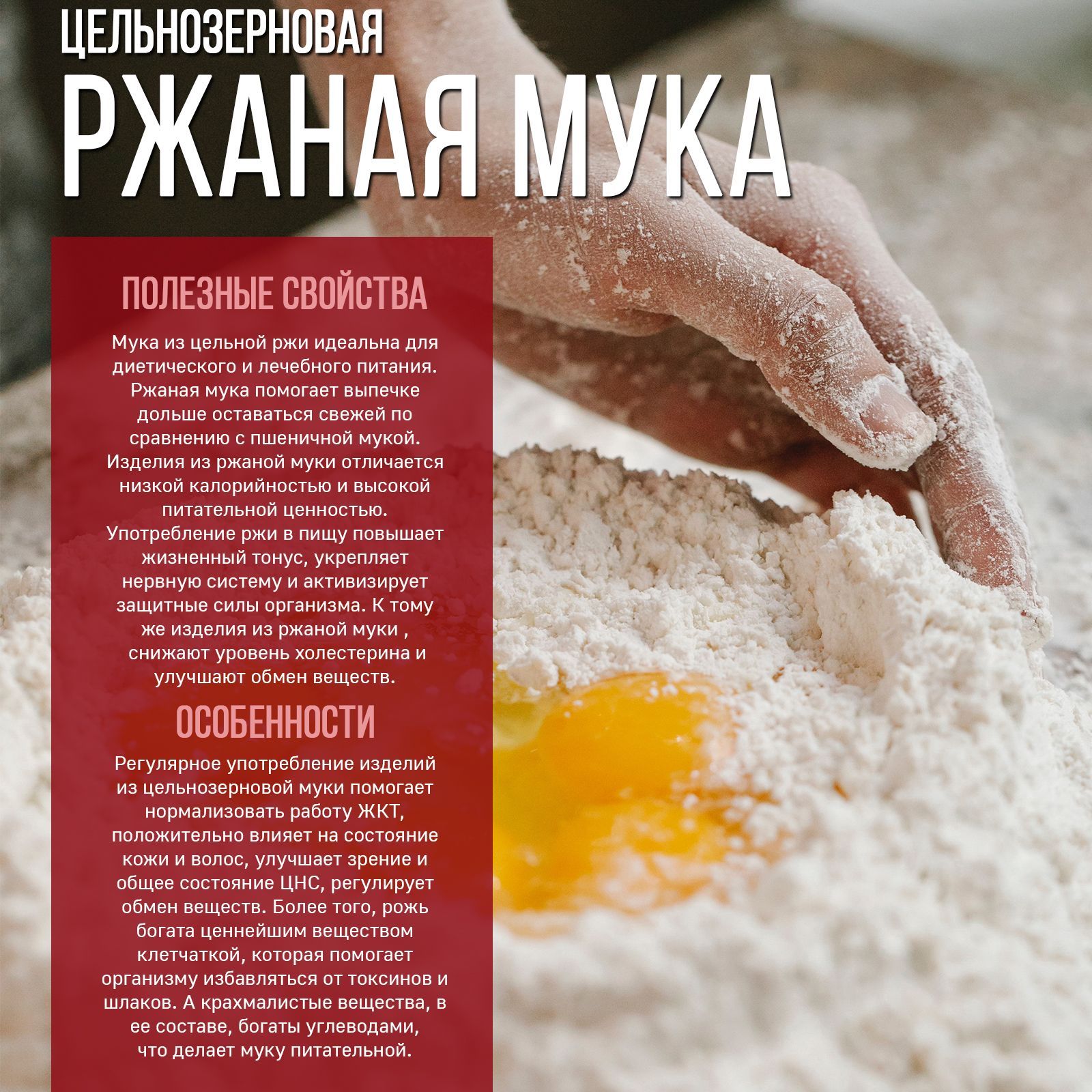 Описание: При производстве ржаной цельнозерновой муки, как и муки пшеничной : используется цельное зерно, оно содержит все полезные питательные вещества зародыша, отрубей и эндосперма.