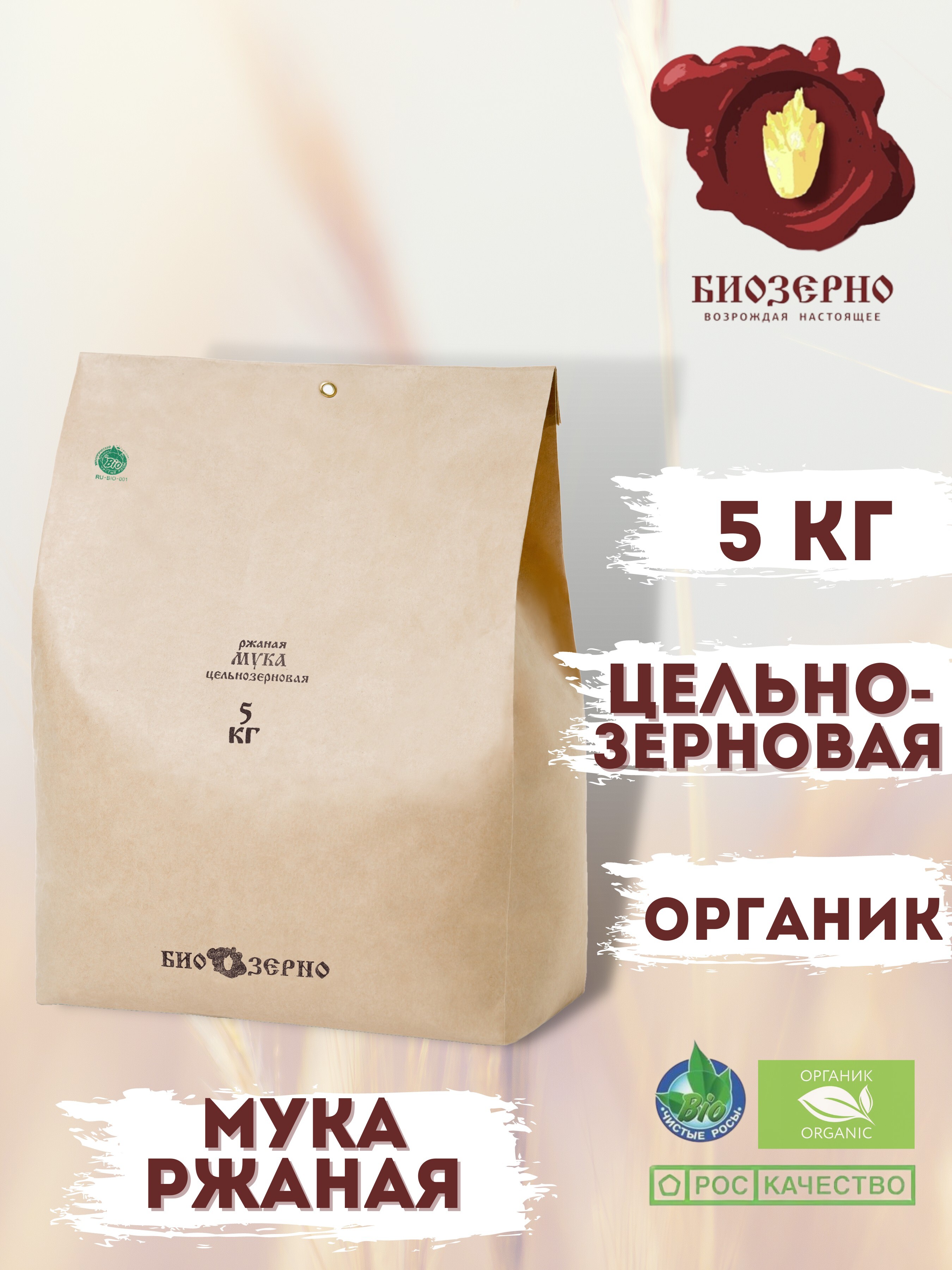 Мука ржаная цельнозерновая БиоЗерно органическая 5 кг
