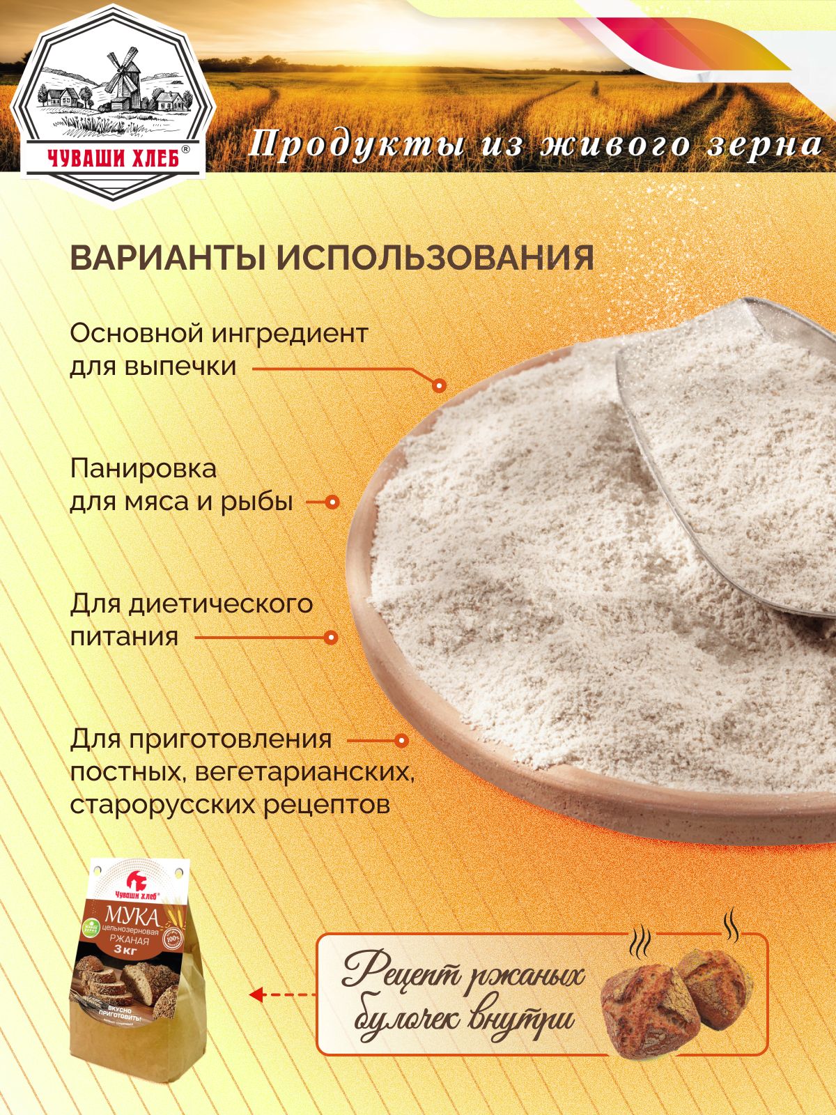 Описание: Мука пшеничная цельнозерновая, 3 кг для диетического, правильного питанияМука цельнозерновая ржаная является отличным и полезным продуктом, который может быть использован в различных диетических системах питания. Ее высокое содержание витаминов, клетчатки, макро- и микроэлементов может значительно улучшить состояние организма. Кроме того, при использовании этой муки в выпечке, вы сможете достичь новых вкусовых оттенков, уникального аромата и насыщенного вкуса.Ниже приведен рецепт приготовления ржаных булочек.