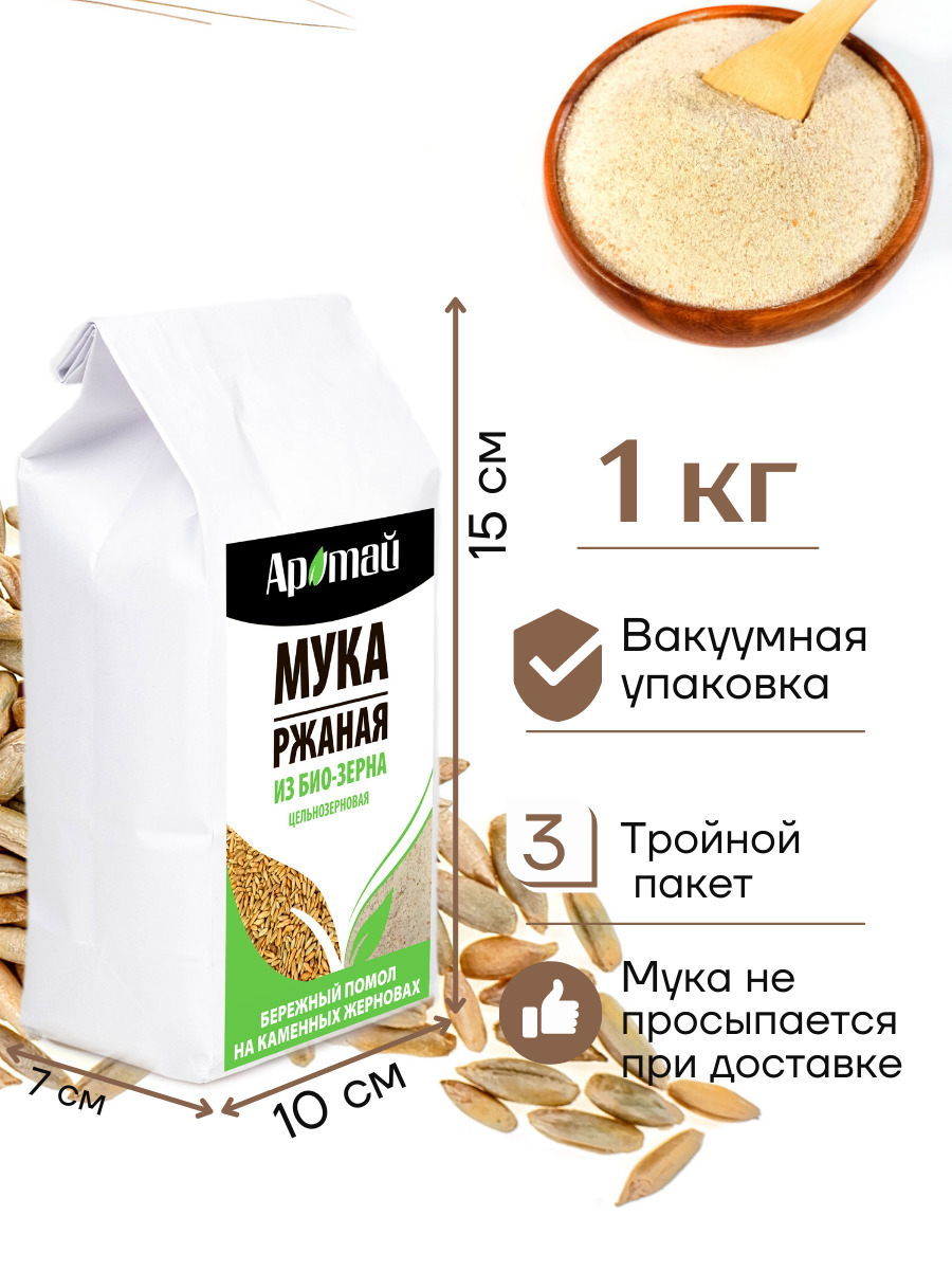Мука ржаная цельнозерновая из био зерна, рожь, правильное питание, диетические продукты, еда, 1000г