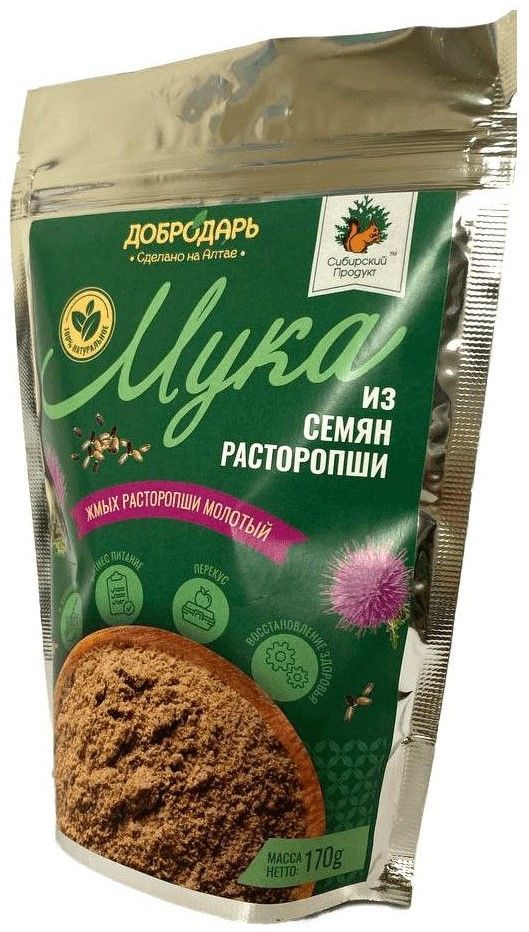 Описание: Мука расторопши представляет собой обработанные и перемолотые в порошок семена растения. Именно в зернах травы содержится комплекс полезных веществ и элементов, способных оздоровить и омолодить организм человека.
