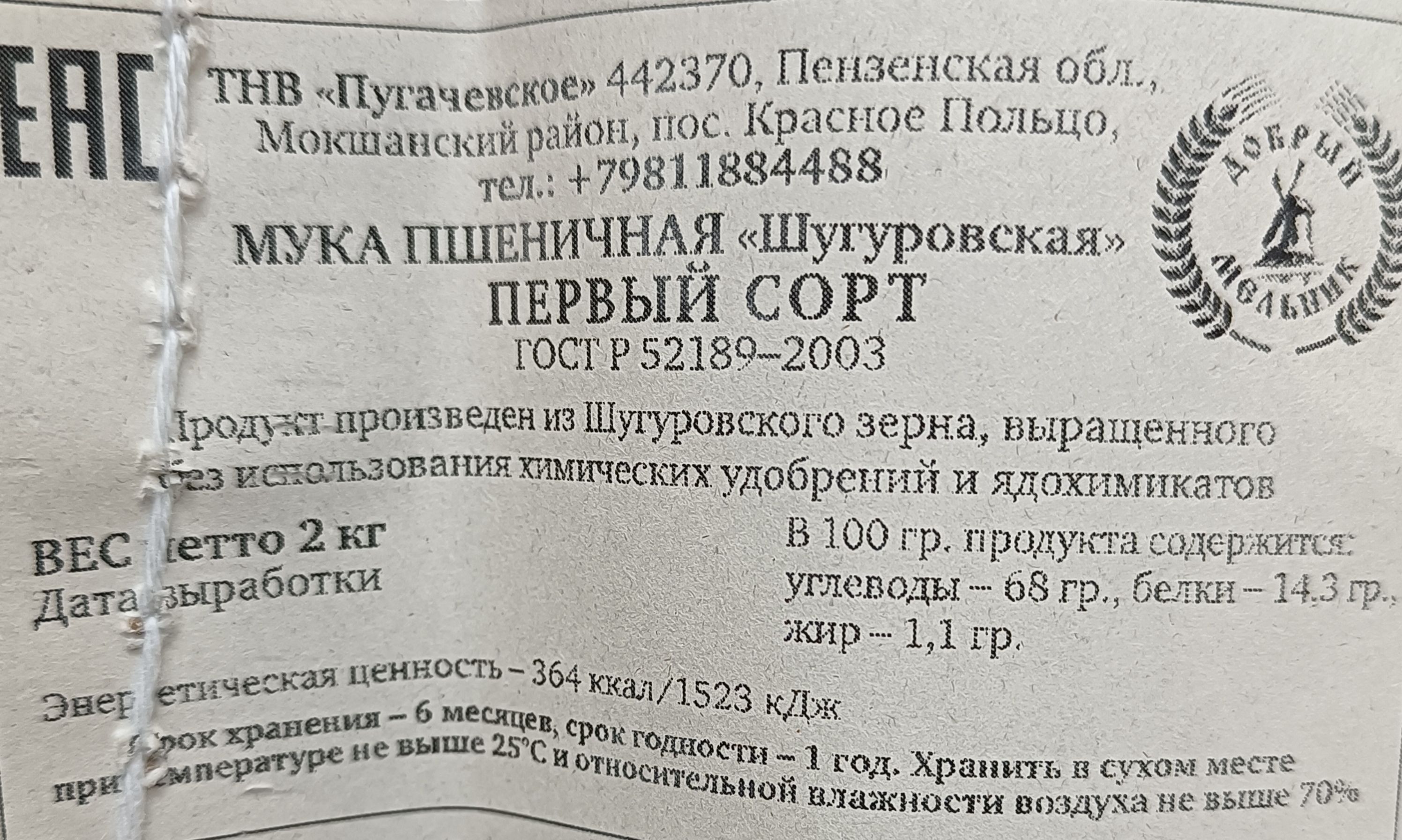 Мука Шугуровская пшеничная первого сорта, 2 кг