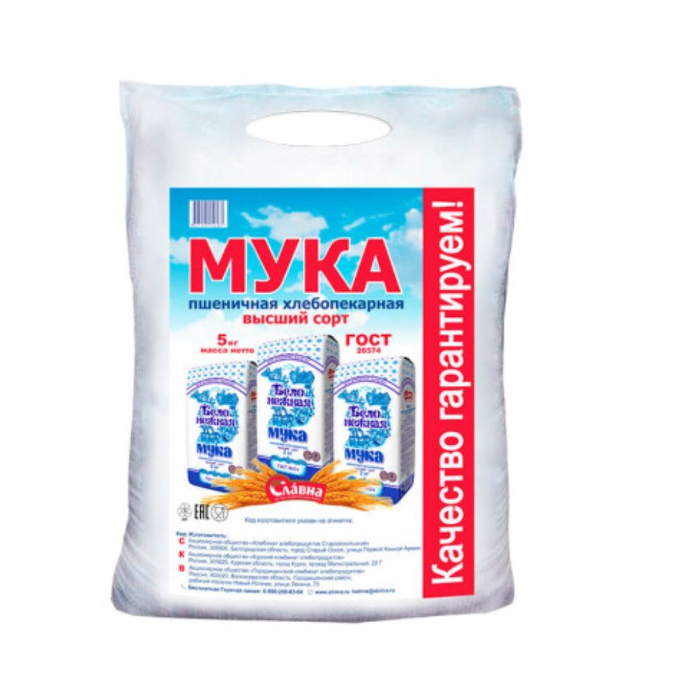 Описание: Мука Старооскольская 5кг пшеничная в\с — мечта каждой хозяйки. Она идеально подходит для любой выпечки: хлеба, пирожков, пельменей, тортов, кексов, блинов, отличается белизной и прекрасными хлебопекарными качествами. Привлекательный внешний вид и прекрасный вкус - главные достоинства домашней и промышленной выпечки.