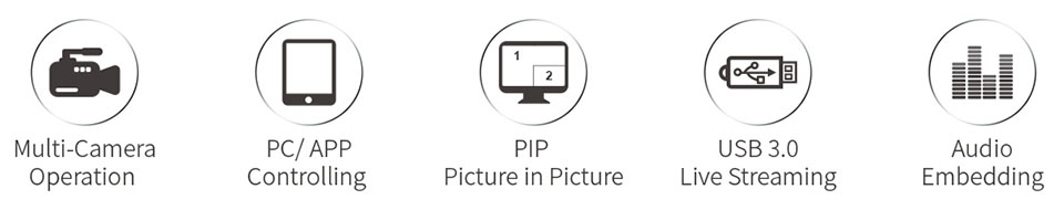 • Поддержка переключения между 6-картинным PVW и PGM на выход HDMI