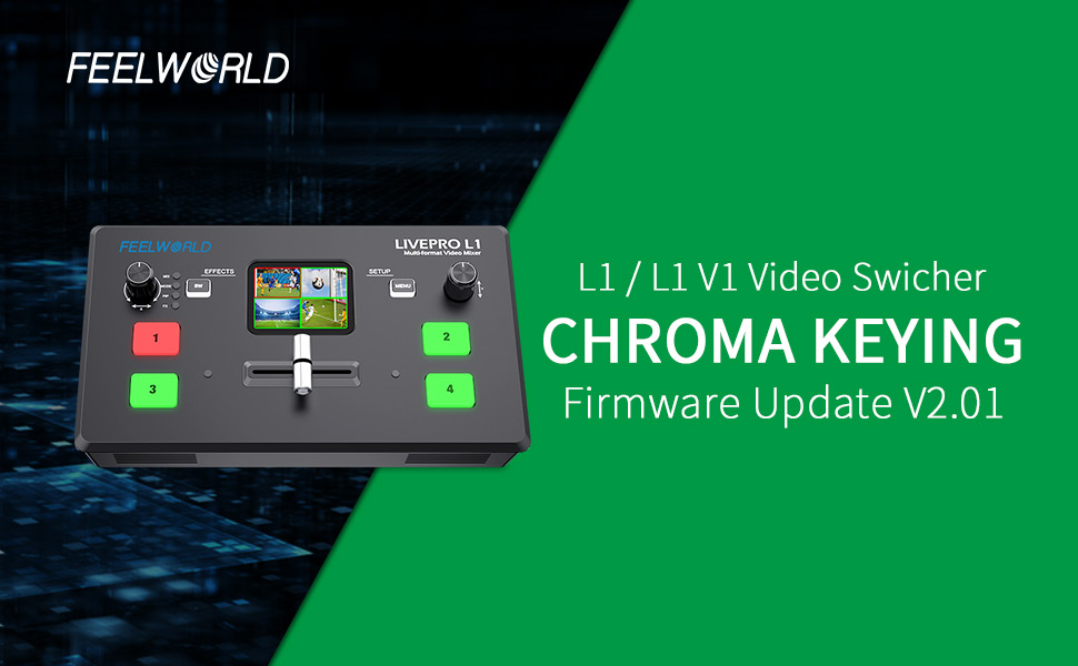 • Уважаемый пользователь FEELWORLD, благодарим Вас за использование видеомикшера FEELWORLD, чтобы улучшить взаимодействие с пользователем, мы обновляем прошивку L1/ L1 V1 с функцией хромирования.