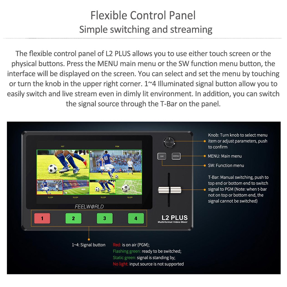 Мультикмера FEELWORLD L2 PLUS с ЖК-дисплеем 5,5 дюйма, смеситель для видео с сенсорным экраном, PTZ, Chroma Key, USB3.0, для прямой трансляции