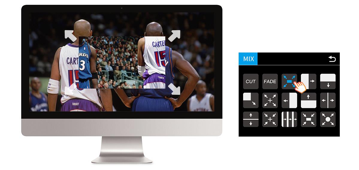 Одним из преимуществ L2 PLUS является профессиональное производство, которое возможно с использованием диапазона встроенных видеоэффектов. "Покроя" имеет твердую вырезать в "Быстрый" режим, который может быть набор для переключения эффекты перехода от 0,5 секунд до 5,0 секунд. Вы также можете использовать T-Bar для переключения специальных эффектов, которые вы хотите.