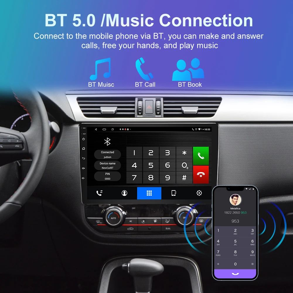 Автомобильная стереосистема BT 5,0 Поддержка ответа/совершения звонков и громкой связи, не отвлекаясь. Слушайте свои любимые музыкальные сервисы и приложения с помощью беспроводного потока BT для аудио.