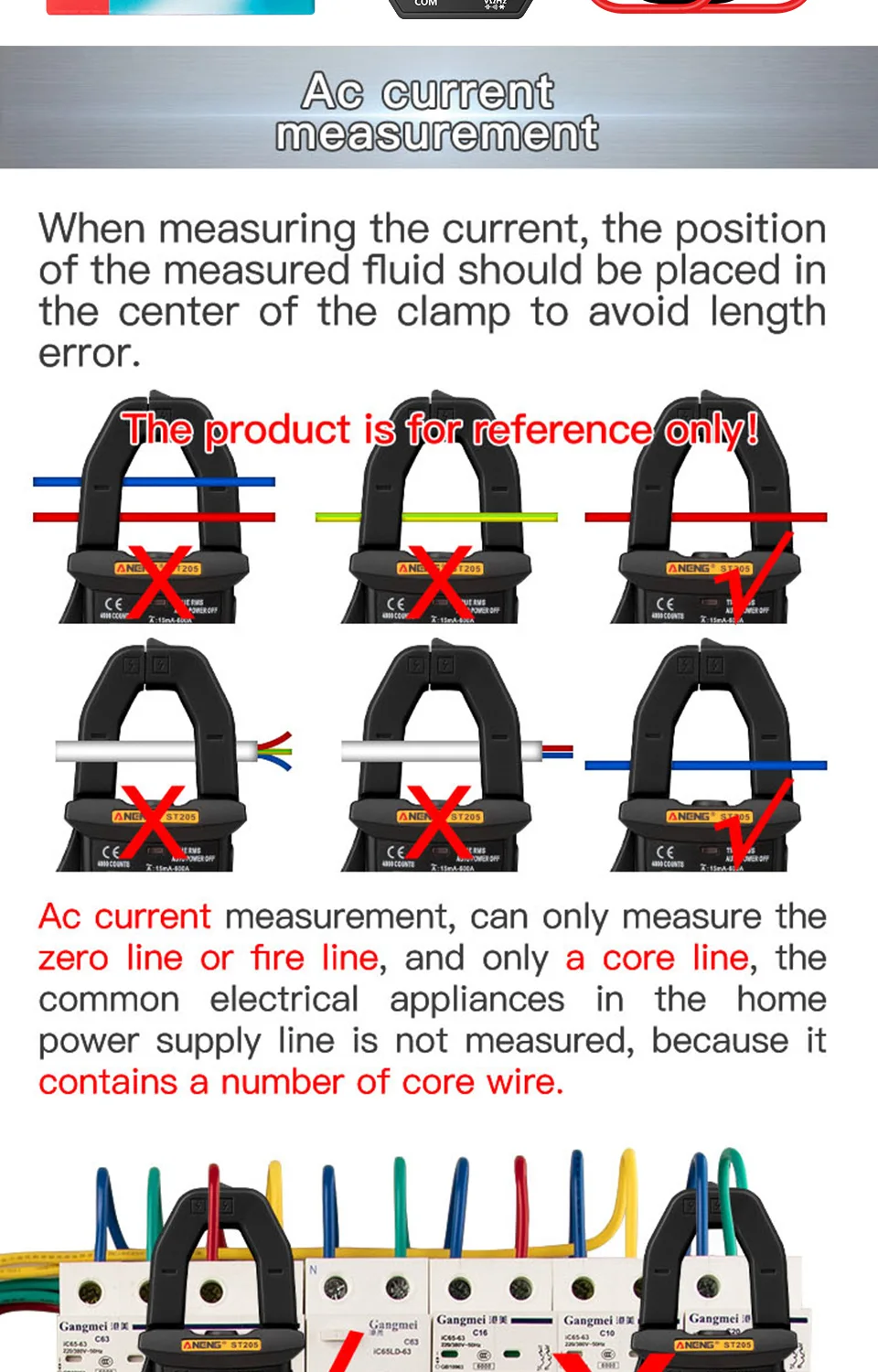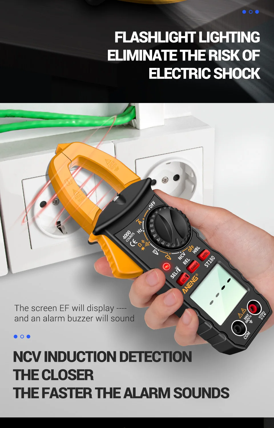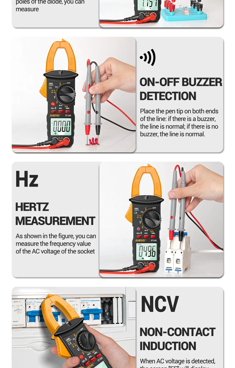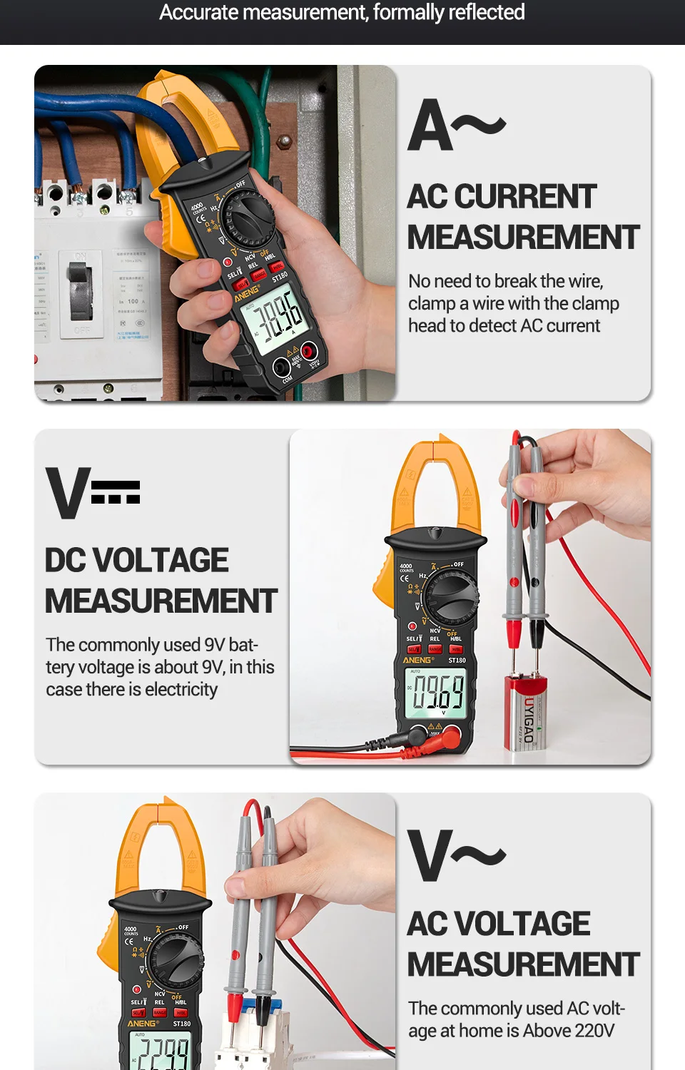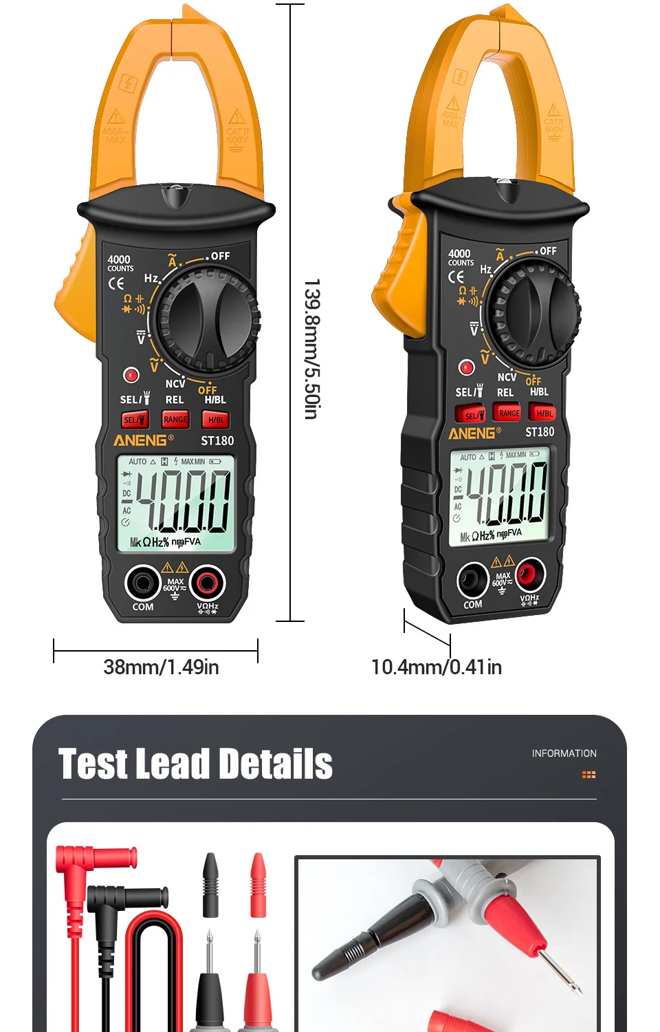 Мультиметр-клещи токоизмерительные цифровые ANENG ST180, 4000 отсчетов, цвет в ассортименте