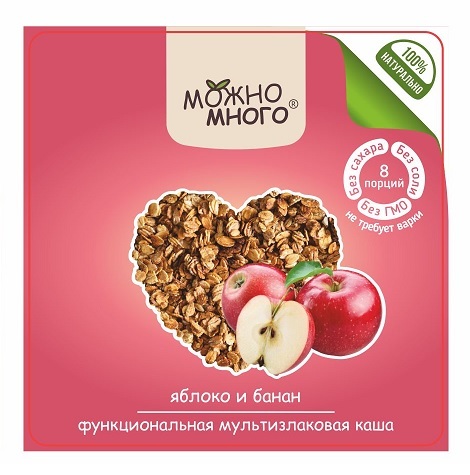 Мультизлаковая каша без варки "Можно Много". Яблоко и банан. 8 порций