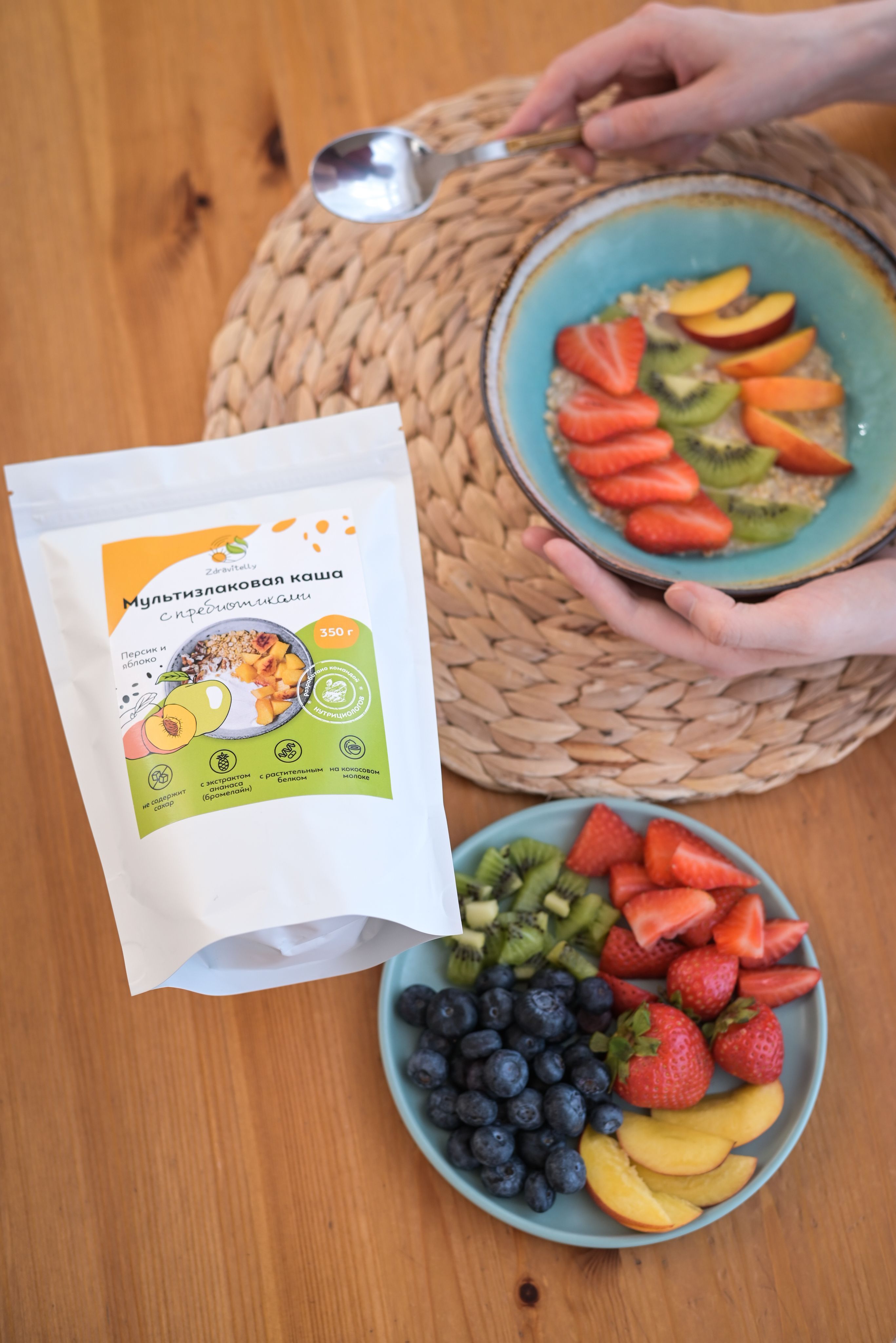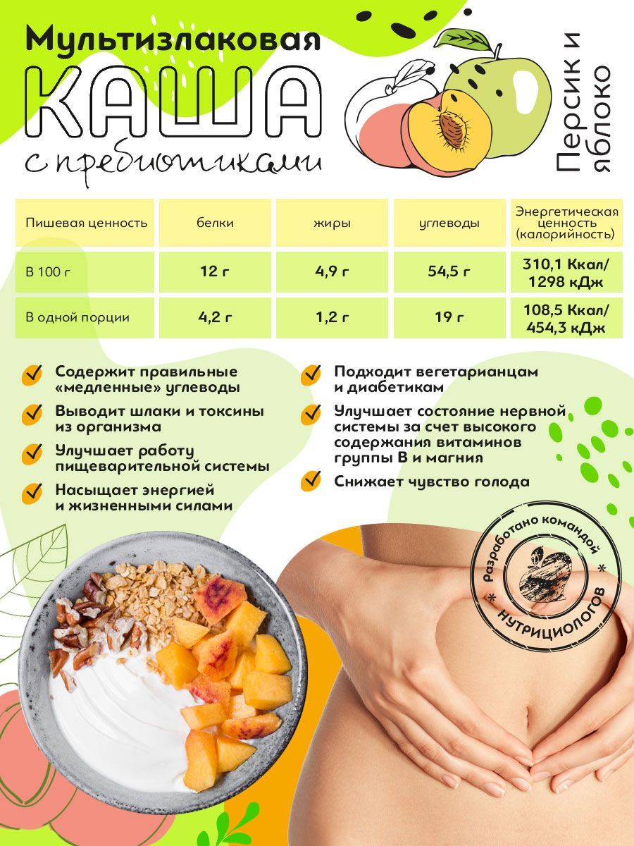Описание: Мультизлаковая каша Мы создали полезную и питательную кашу на основе злаков и растительного белка, чтобы вы могли насладиться аппетитным завтраком и сэкономить время. Наш завтрак богат растительным белком, пищевыми волокнами и пребиотиками, что поможет вам начать день с заботой о своем здоровье.Вместо сахара и фруктозы мы используем безопасные подсластители, такие как эритрит, экстракт стевии и изомальт. Эти подсластители имеют минимальное количество калорий, выдерживают термическую обработку и самое важное ― они не повышают уровень сахара и инсулина в крови.Что содержитОвсяные и ржаные хлопья, амарант, гороховый протеин, кокосовое молоко, инулин и экстракт ананаса (бромелайн).Чем помогаетОвсяные хлопья премиум класса отличаются от обычных хлопьев тем, что они производятся из отборного овса. Кроме того, в процессе производства таких хлопьев используются инновационные технологии, которые позволяют сохранить все полезные свойства зерна. Благодаря этому, они являются более полезным и питательным продуктом для нашего организма.Регулярное употребление ржаных хлопьев помогает восстановить работу пищеварительной системы, снижает объемы желчи и кислотность в кишечнике, что является эффективной профилактикой заболеваний желудочно-кишечного тракта, включая онкологические. У этого продукта есть еще одно полезное свойство - оно способствует улучшению работы нервной системы и выводу токсинов и пестицидов из организма.Амарантовая мука содержит фитостеролы, понижающие холестерин, лизин для усвоения кальция и поддержания здоровья кожи, сухожилий, хрящей и костей, цинк для иммунной системы и клетчатку для контроля аппетита.Гороховый протеин, в отличие от молочного или сывороточного белка, имеет более легкое усвоение и не вызывает негативных эффектов, таких как агрессивное воздействие на работу кишечника или появление высыпаний.Кокосовое молоко оказывает положительное воздействие на различные системы организма. Оно способствует поддержанию здоровья костей и зубов, снижает уровень вредного холестерина, повышает содержание гемоглобина, улучшает обмен веществ и помогает выводить токсины, включая тяжелые металлы. Кроме того, кокосовое молоко восстанавливает баланс микрофлоры кишечника и нормализует пищеварение. Оно также способствует улучшению состояния кожи и волос, а также регулирует уровень сахара в крови.Природный полисахарид и пребиотик пребиотик инулин улучшает усвоение полезных микроэлементов, таких как кальций, магний, железо, медь и фосфор. Он также укрепляет иммунитет и повышает обменные процессы в организме. Кроме того, инулин способствует восстановлению поврежденных тканей печени.Бромелайн помогает снизить вес, улучшить обменные процессы и ускорить метаболизм. Он также обладает противовоспалительными свойствами для суставов и может снизить риск тромбообразования. Кроме того, бромелайн помогает расщеплять белки, улучшает работу ЖКТ, способствует восстановлению после физических нагрузок и укрепляет иммунитет.Как употреблятьПриготовление займет всего несколько минут, при этом чувство сытости будет с вами надолго.Можно приготовить дома, на работе, в дороге ― залейте сухую смесь горячей водой или молоком и подождите несколько минут.Готовый завтрак Zdravitelly (Здравителли) подходит для диа