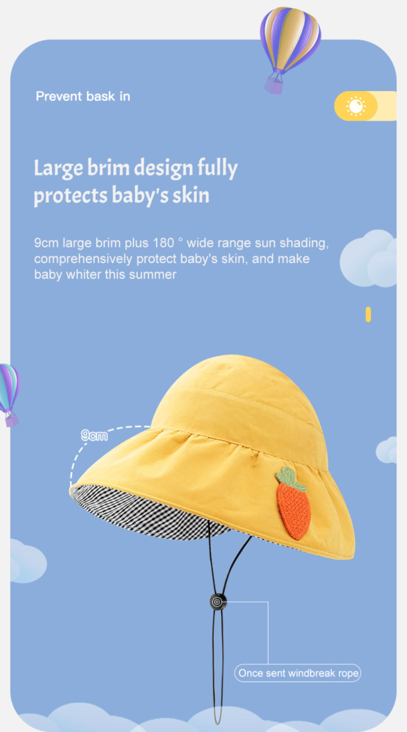 【Дизайн с большими полями】 Большие поля 9 см плюс широкий диапазон затенения 180 °, комплексный уход за кожей ребенка