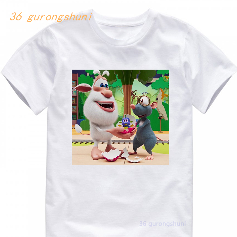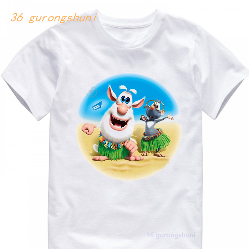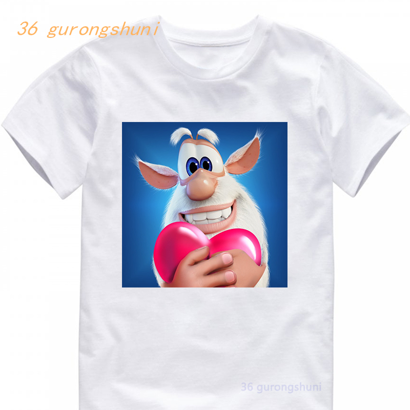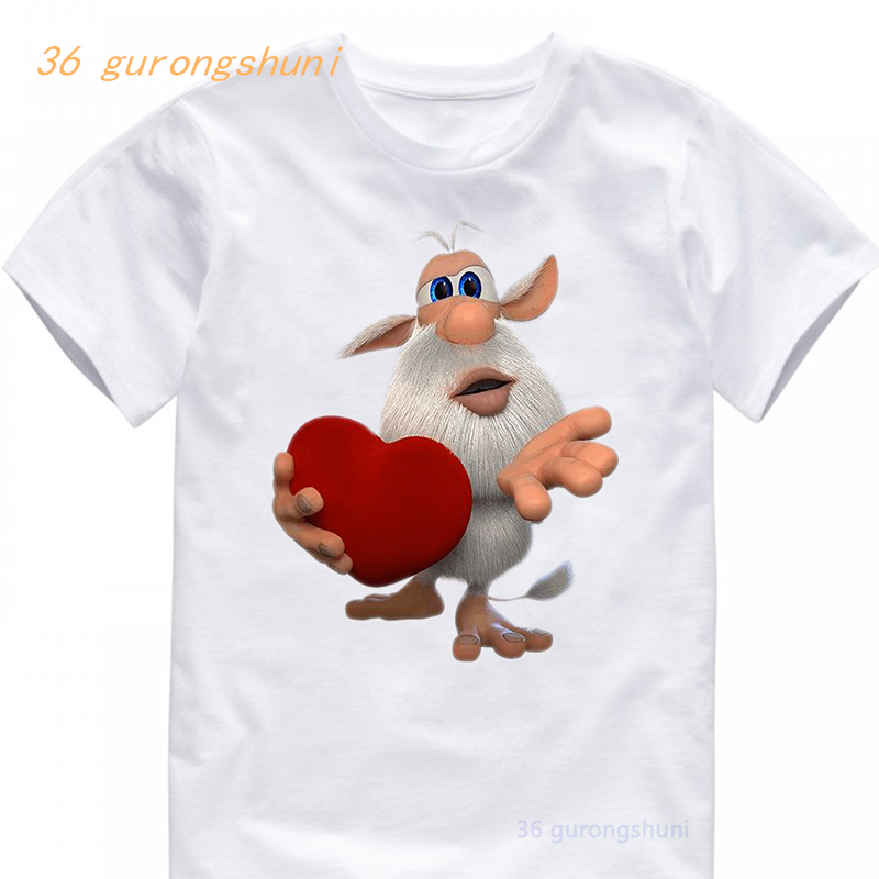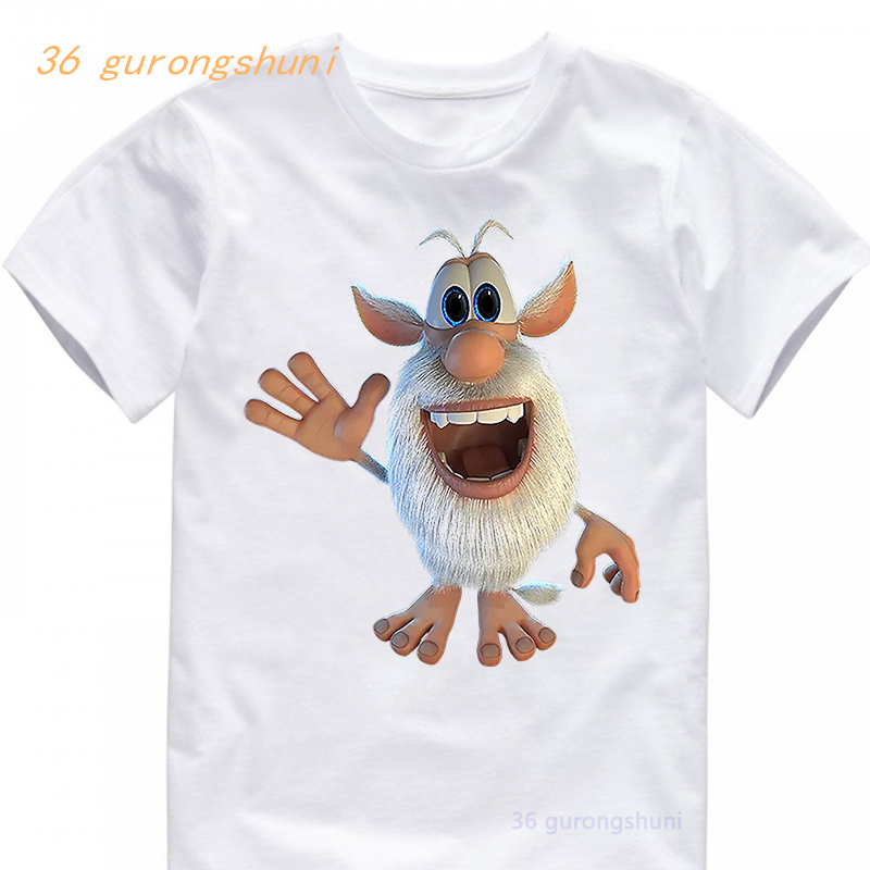 Мультяшная одежда для маленьких детей, футболка для мальчиков, летние футболки с аниме принтом, футболки для детей, футболки Буба, белые футболки, топы для девочек 371 Буба Мультфильм для детей