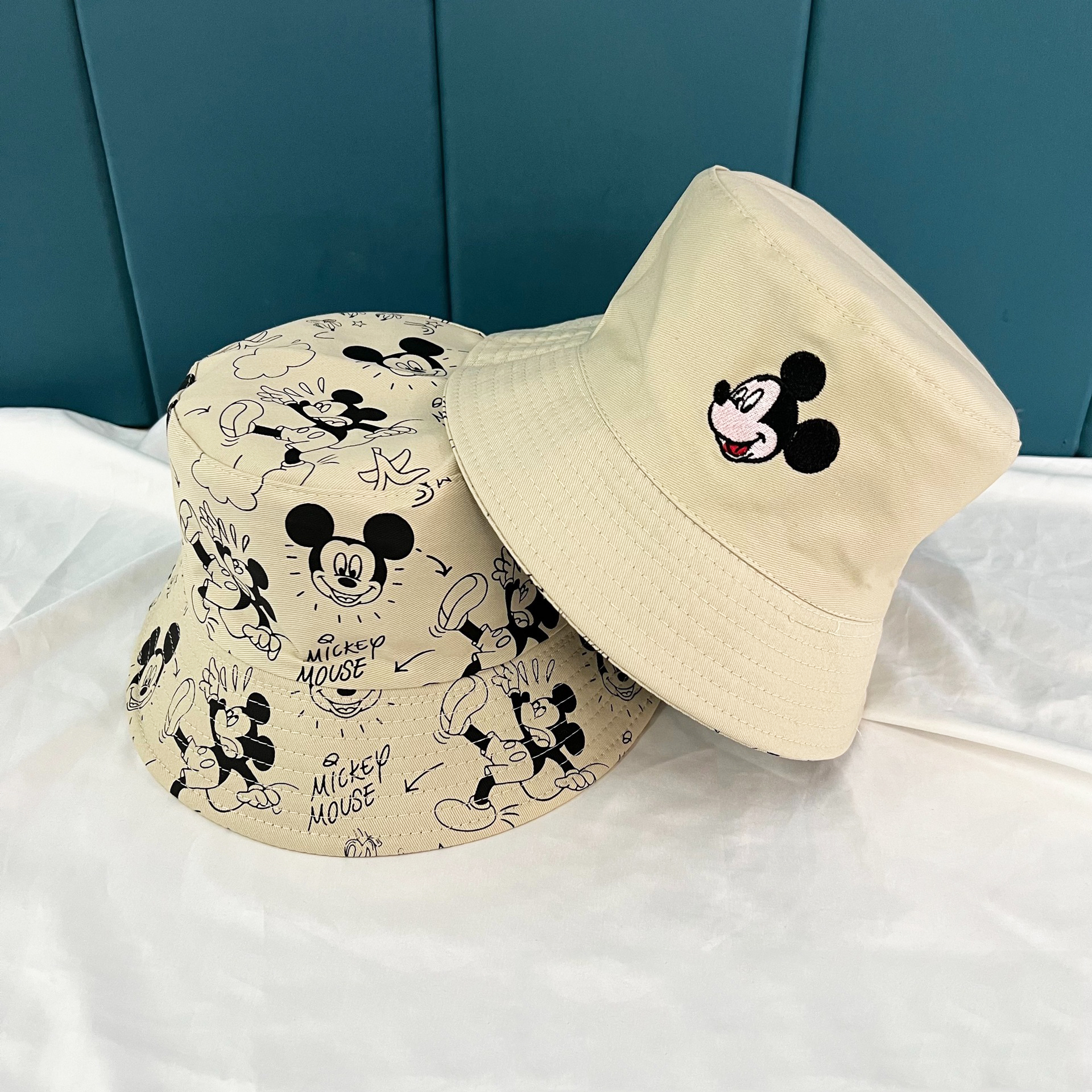 Мультяшная универсальная Рыбацкая шляпа с Микки Маусом, хлопковая шапка с двусторонним принтом, подарок для детей на день рождения, окружность 56-58 см