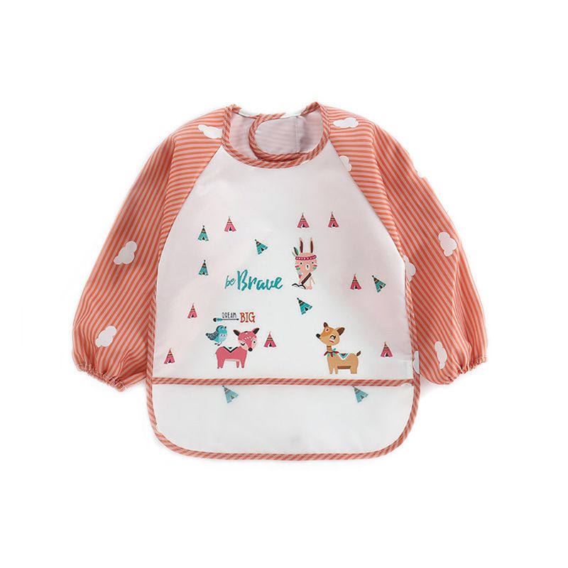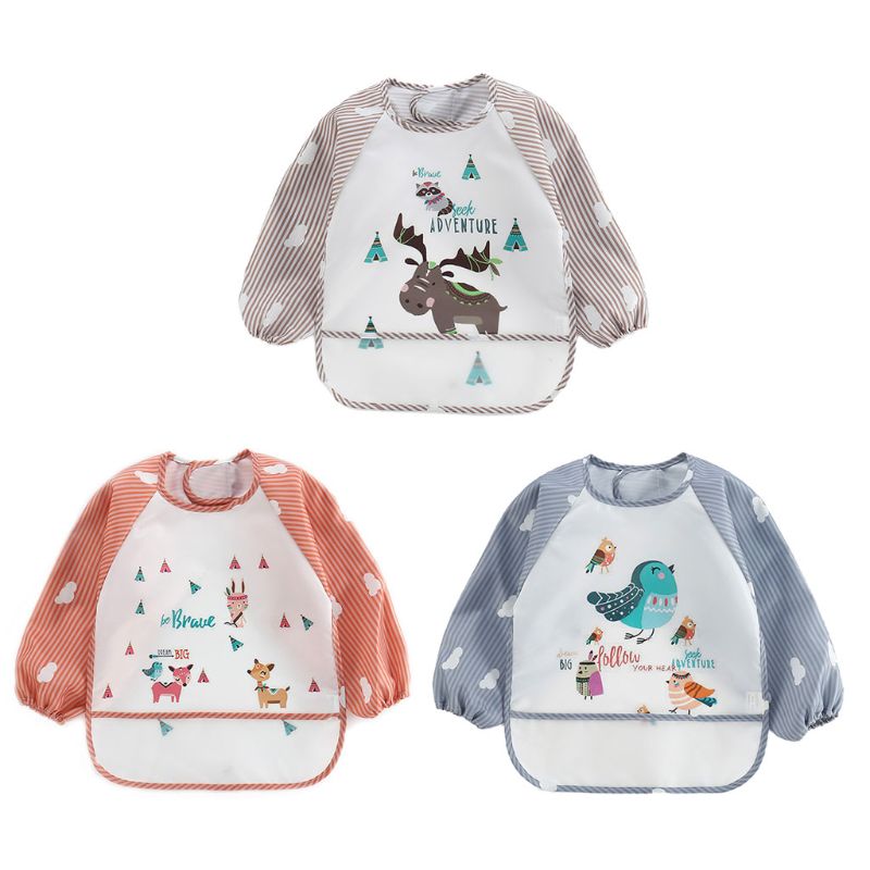 Нагрудники для маленьких мальчиков Водонепроницаемые нагрудники с длинным рукавом для девочек Детский тканевый нагрудник для кормления с карманом Детский фартук Смок