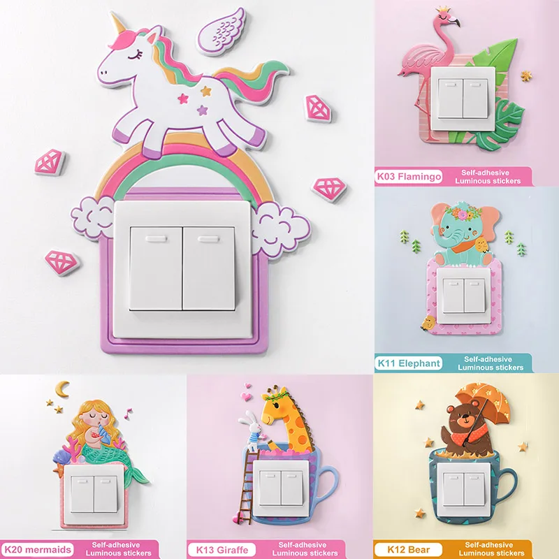 Мультяшные животные Единорог Фламинго крышка переключателя комнатный Декор 3D силиконовая наклейка Переключатель ВКЛ-ВЫКЛ светящийся выключатель настенная наклейка