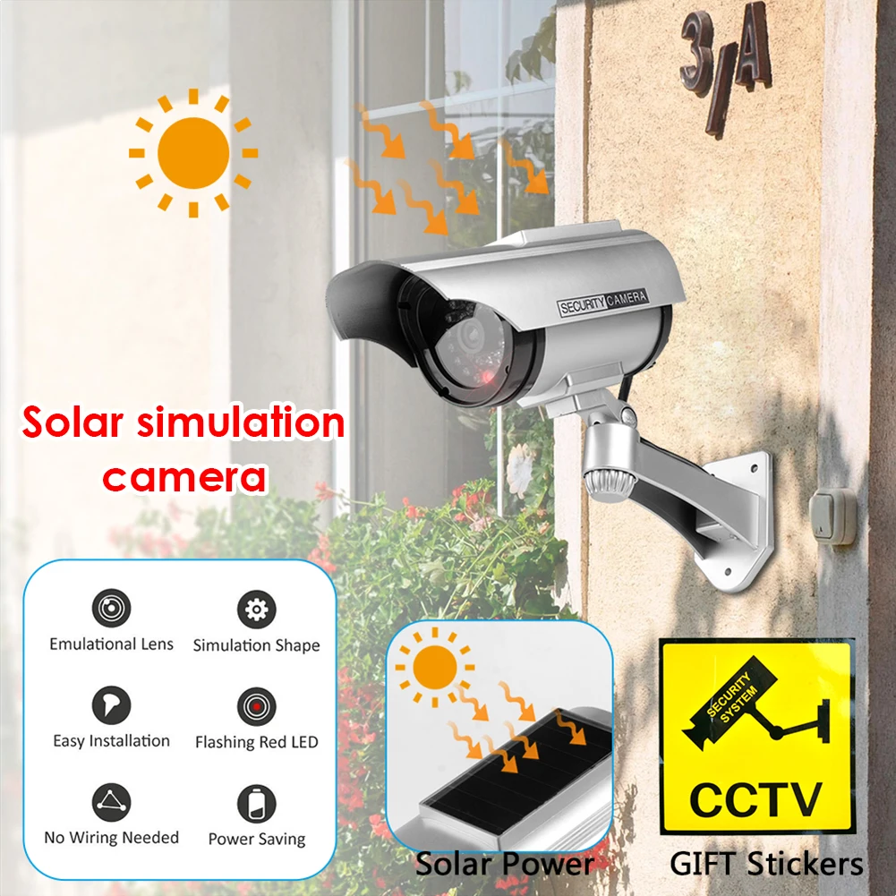 Поддельная камера на солнечной энергии мигающий красный светодиодный монитор Крытый Открытый Моделирование видеонаблюдения Видеонаблюдение Манекен камеры безопасности