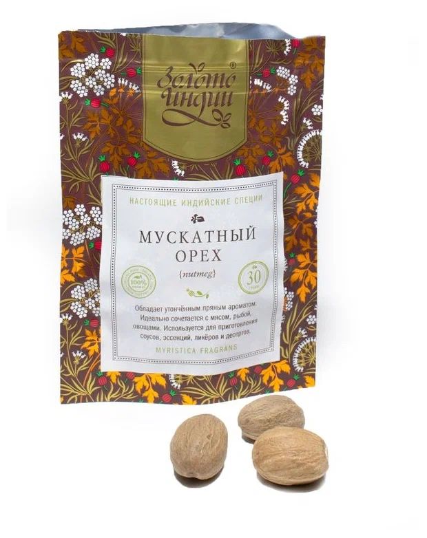 Мускатный орех натуральный "Золото Индии" целый, для выпечки, приправа для напитков, для мяса, для рыбы, 30г
