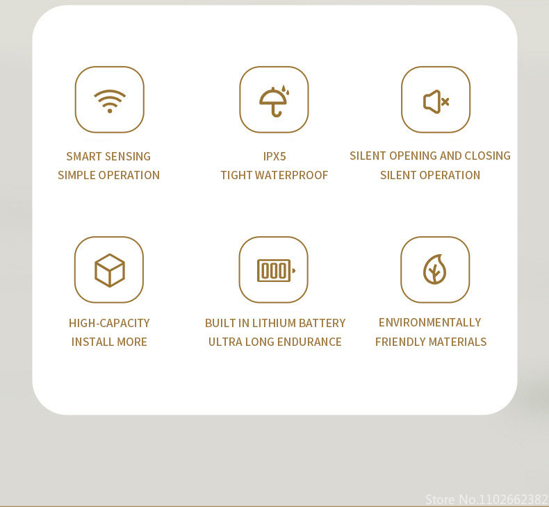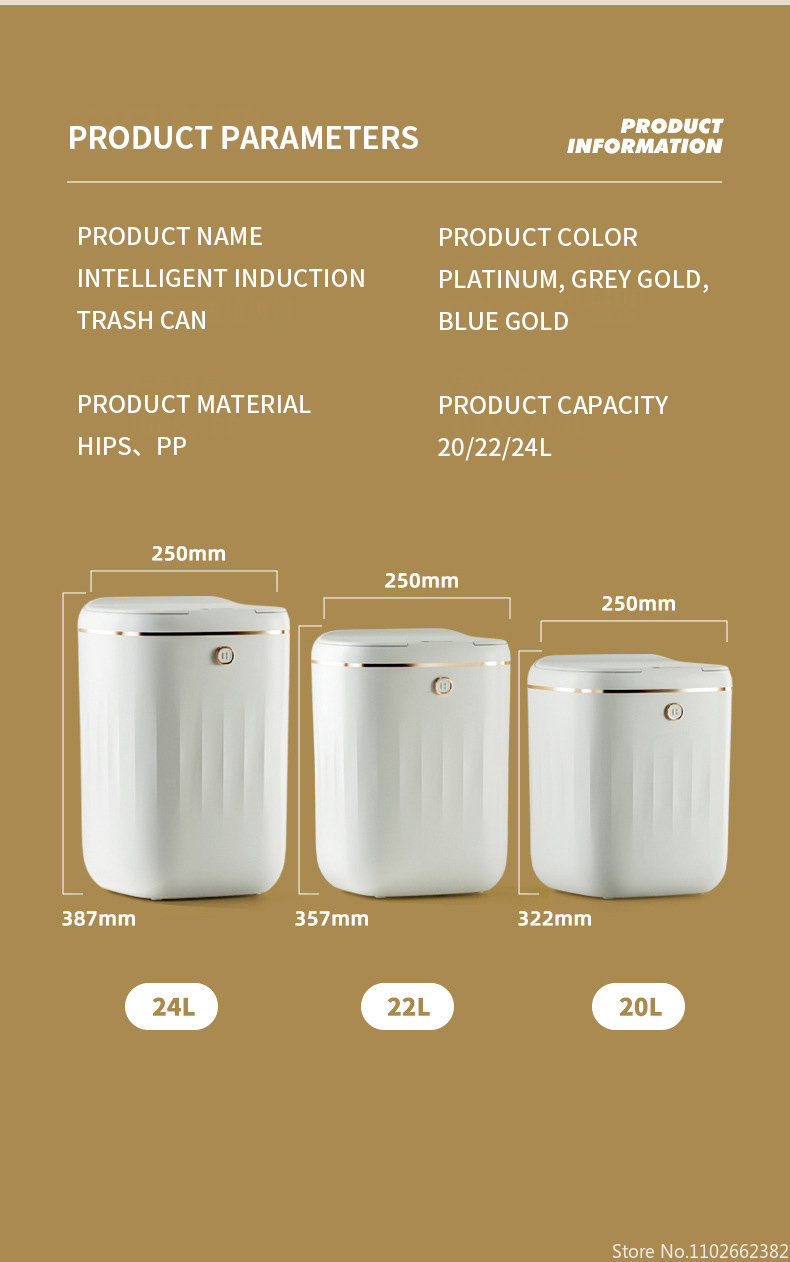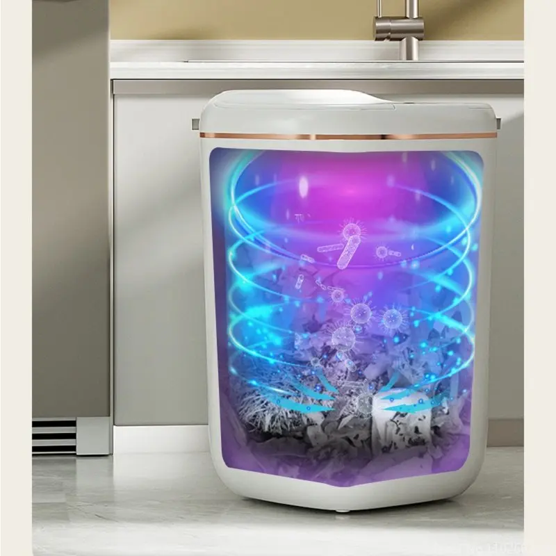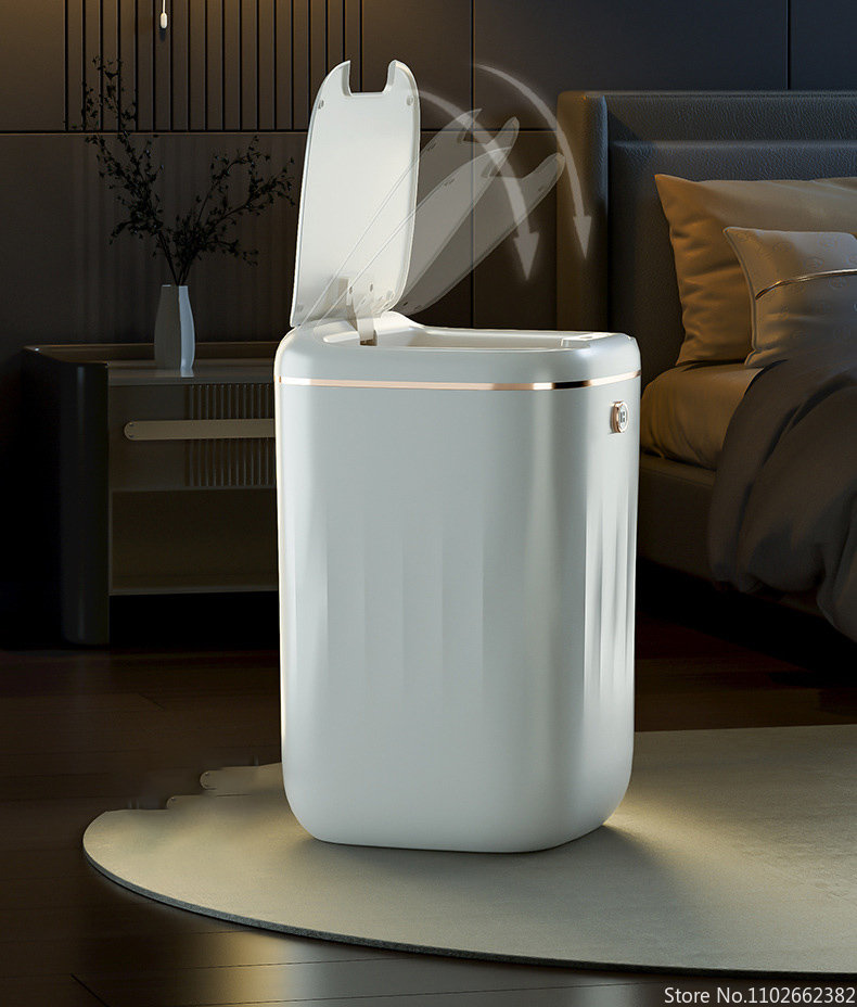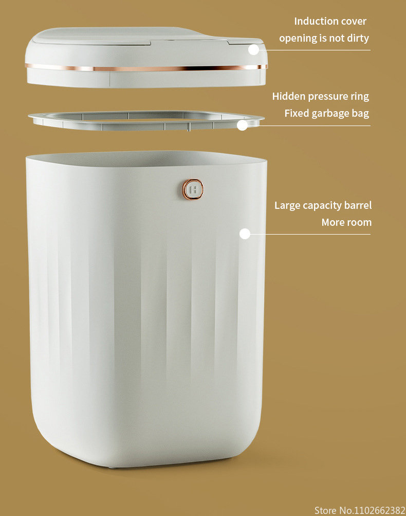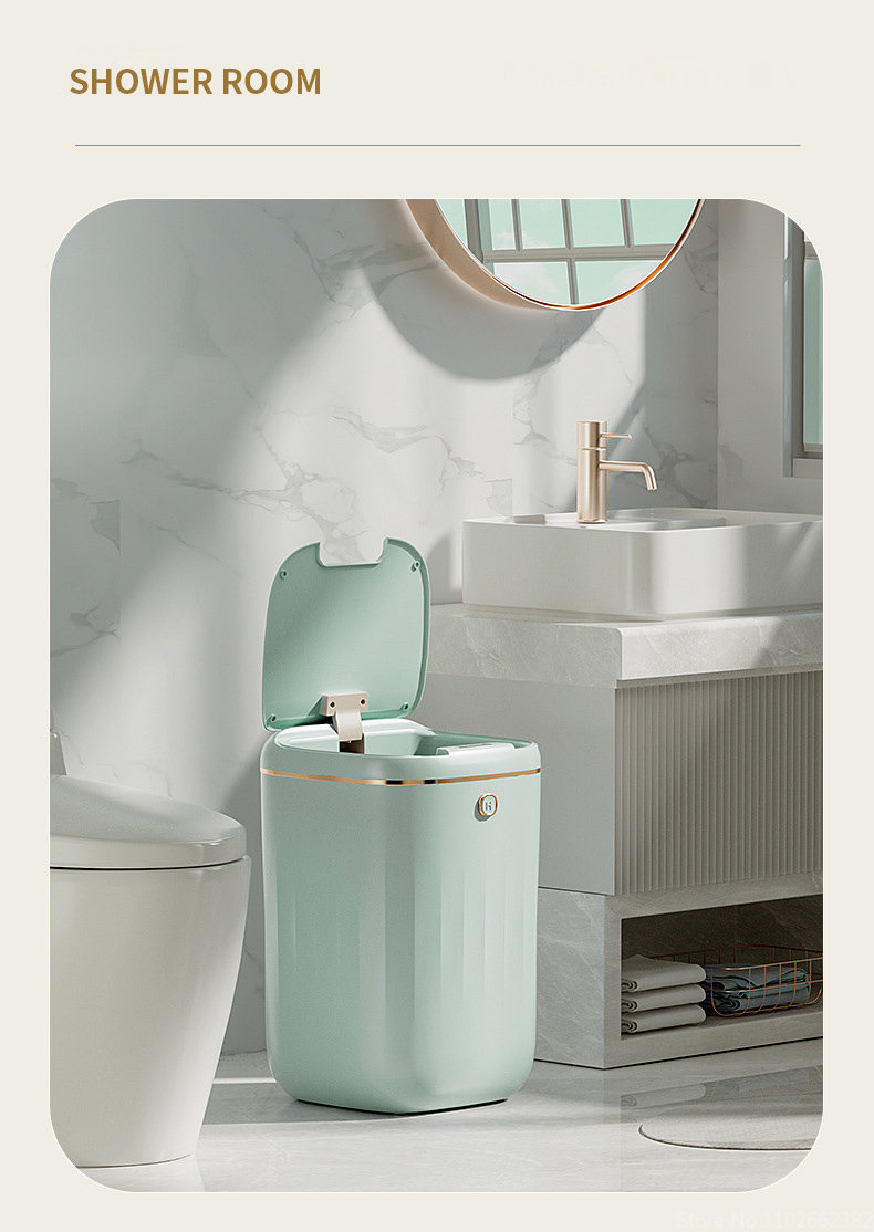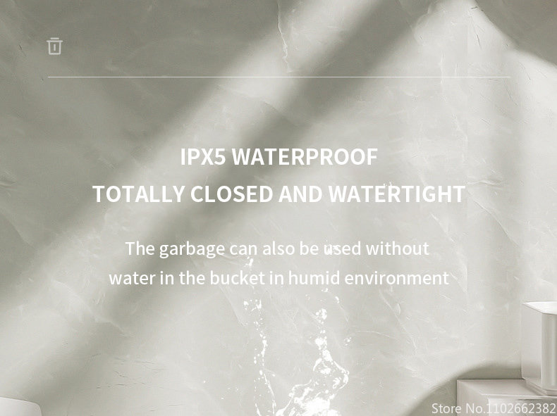 Особенности:Мусорные баки имеют 3 метода, который нужно раскрыть, ноги kick, индукцию (размахивая руки/гнуть колени), и кнопку, автоматическое отверстие, молча закрывая, IPX5Водонепроницаемость.