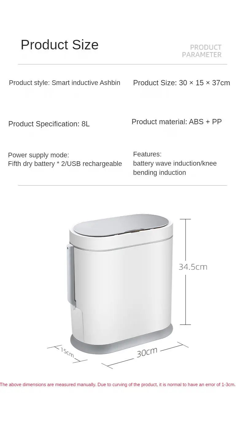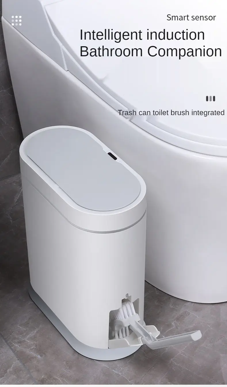 Мусорная корзина с умным датчиком, автоматическое ведро для мусора в ванной комнате, с крышкой и щеткой для туалета, водонепроницаемая корзина для мусора с узким швом