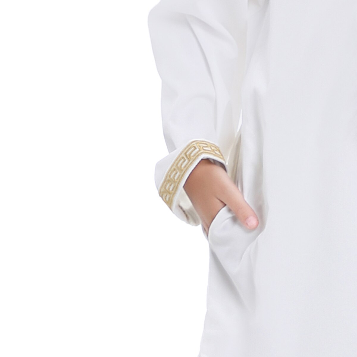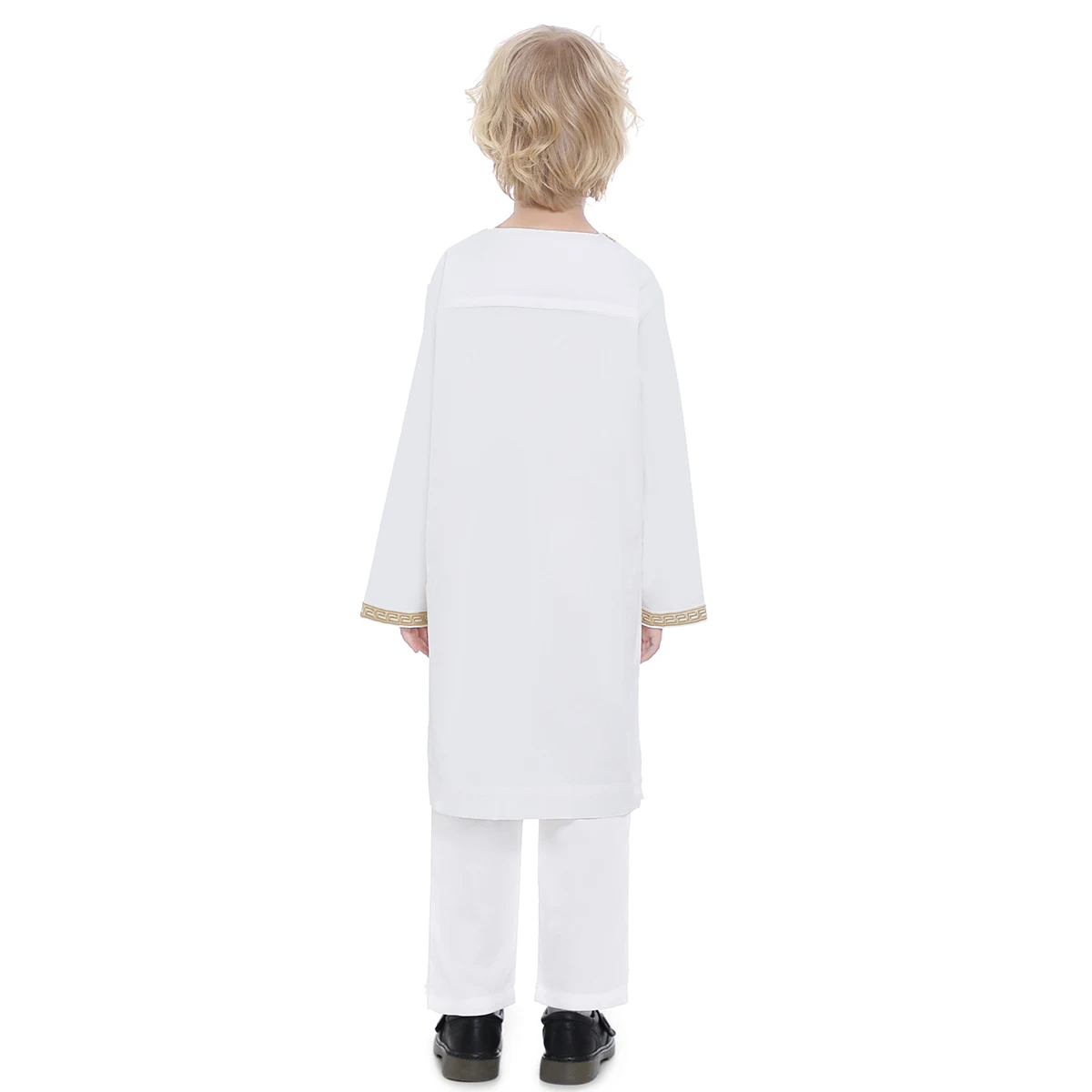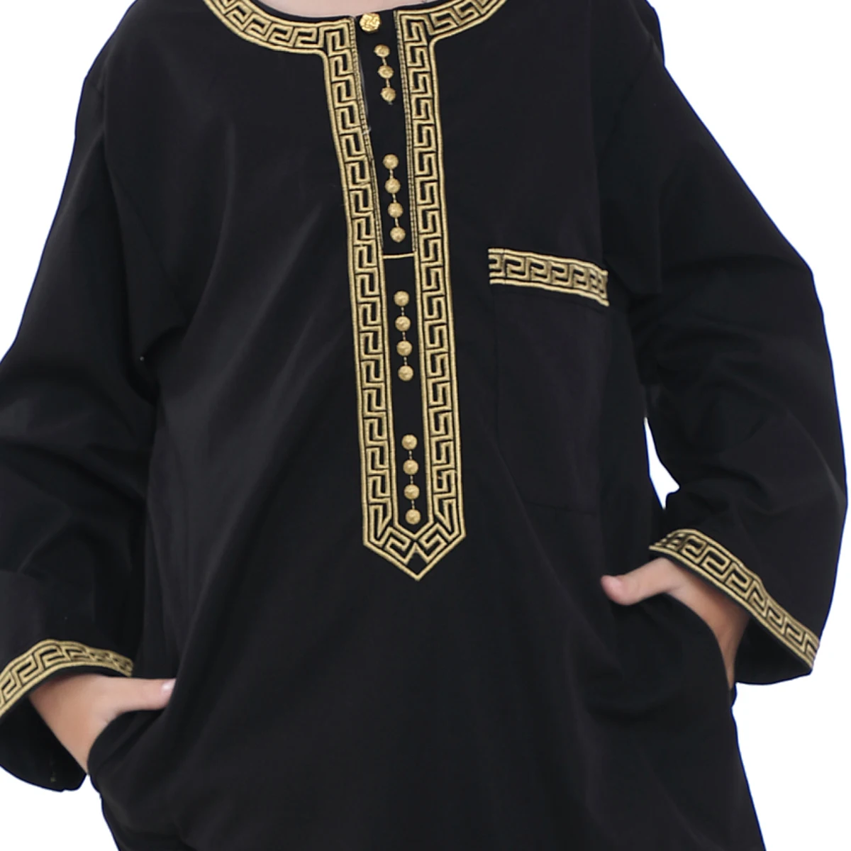 Мусульманский костюм для мальчиков с круглым вырезом и вышивкой на пуговицах с длинными рукавами тобы и брюки костюм арабский детский Рамадан халат кафтан