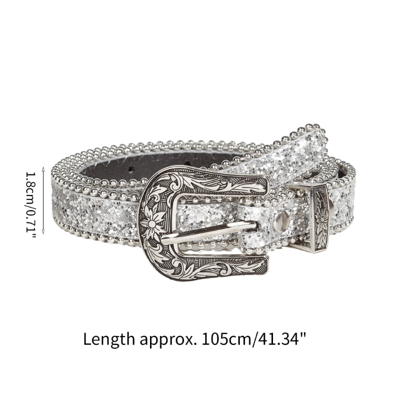 Качественный Материал: Этот ремень с пайетками изготовлен из высококачественной искусственной кожи, материал и определенный процесс делают любое изделие надежным, удобным и долговечным.
