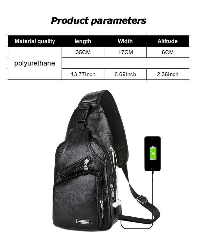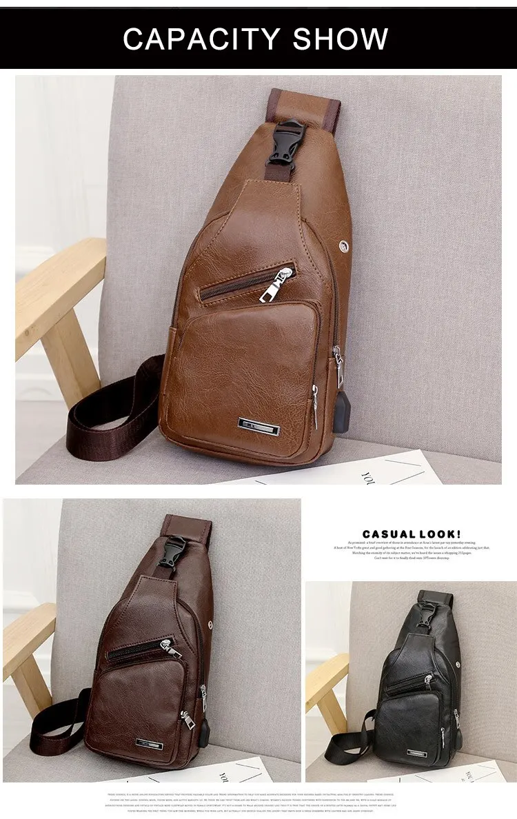 Мужская нагрудная сумка с usb-зарядкой и отверстием для гарнитуры, многофункциональная сумка с одним ремешком, противокражная нагрудная сумка с регулируемым плечевым ремнем