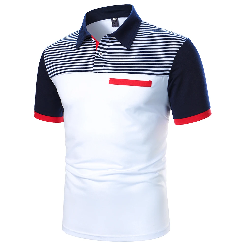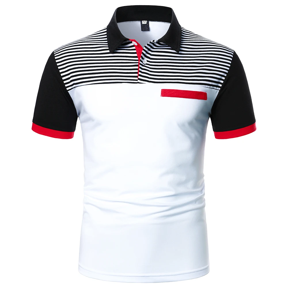 Мужская рубашка-поло в полоску, с коротким рукавом