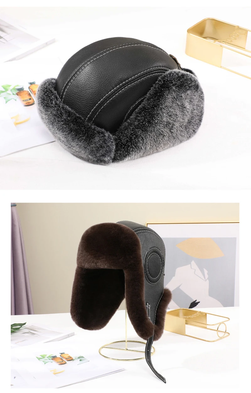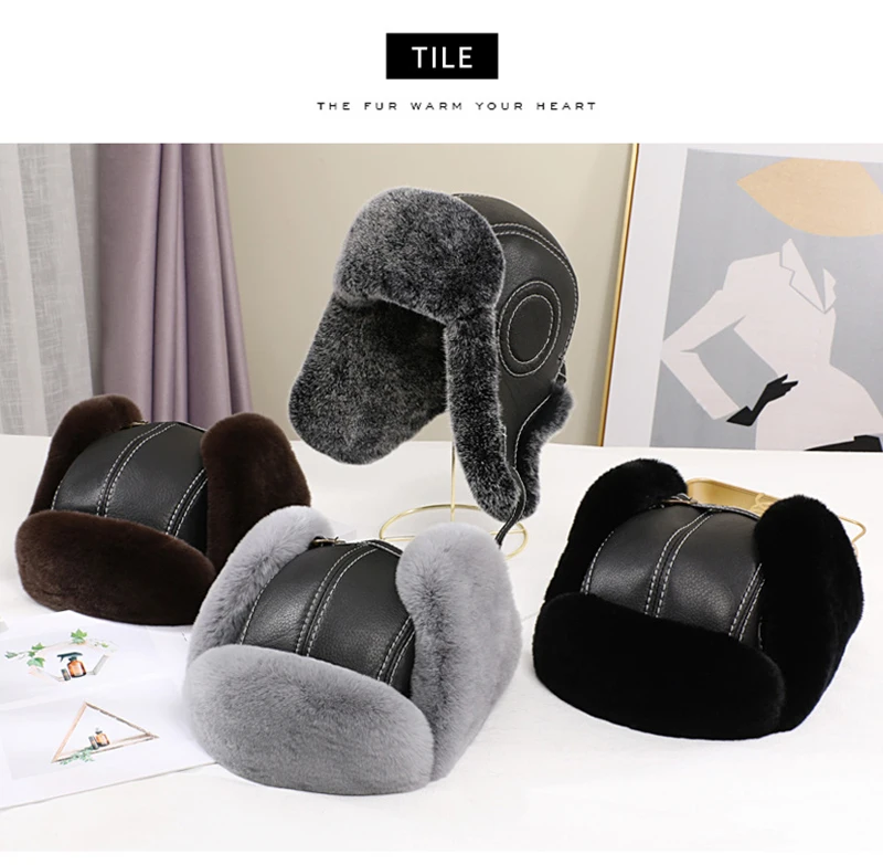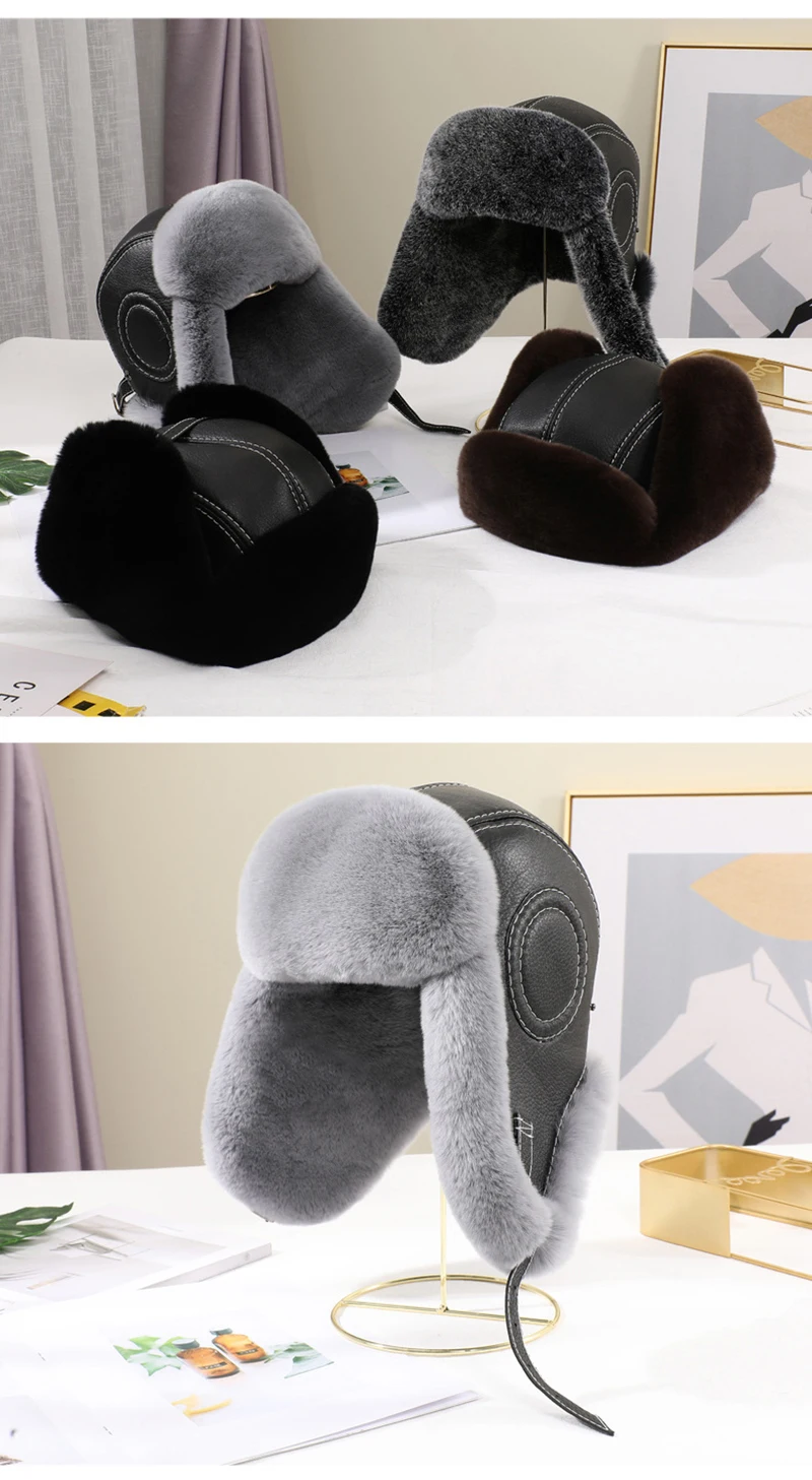 Мужская шапка авиатора из натурального меха кролика Рекс