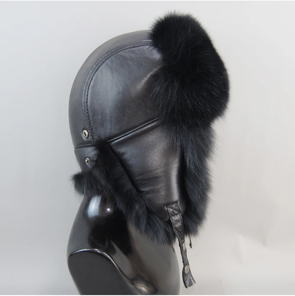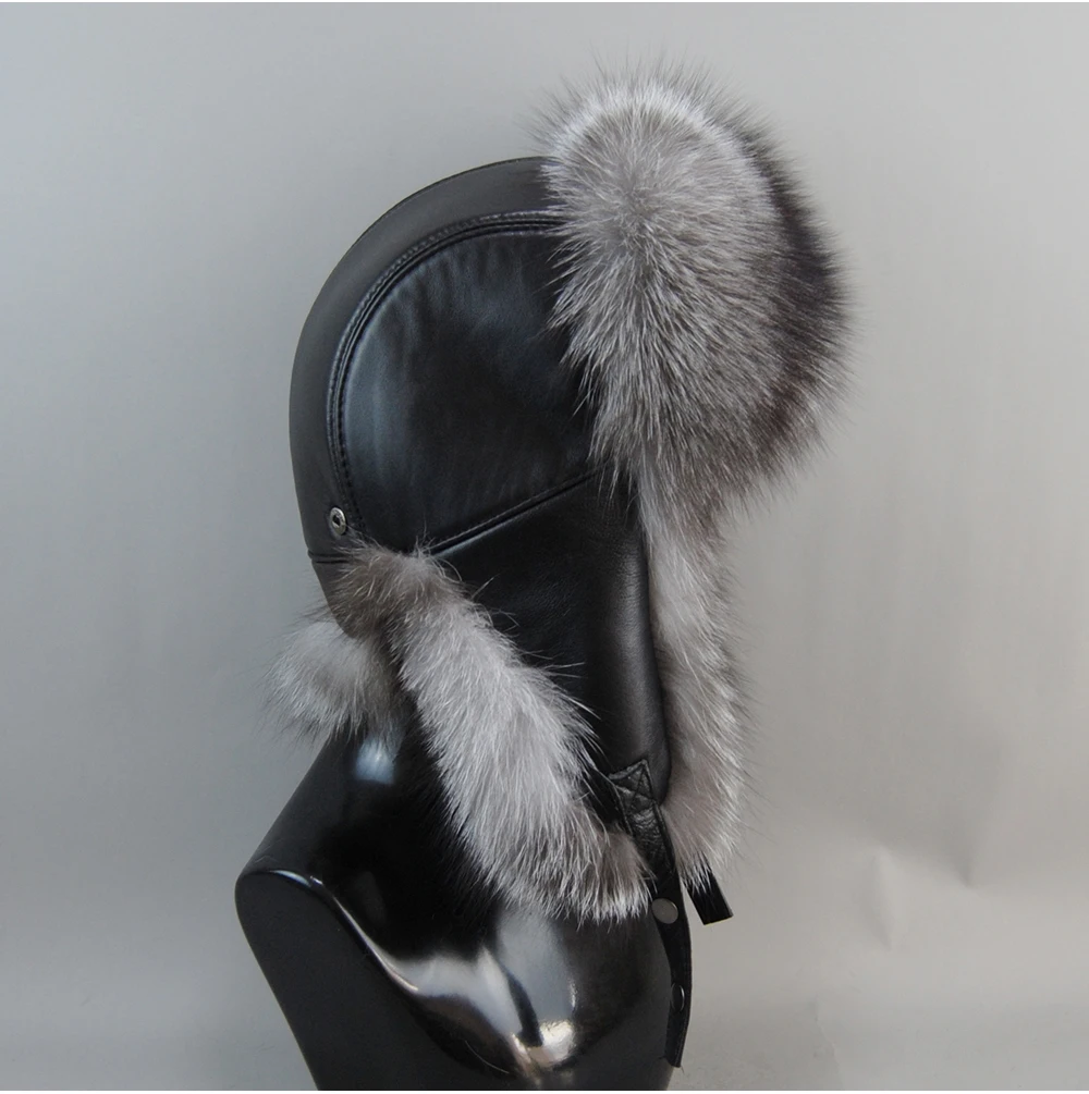Мужская шапка-бомбер из натурального лисьего меха