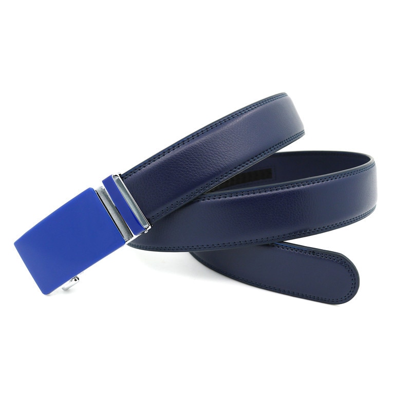 Мужские деловые ремни с металлической автоматической пряжкой и цветным ремешком из воловьей кожи Spikey, 130 см