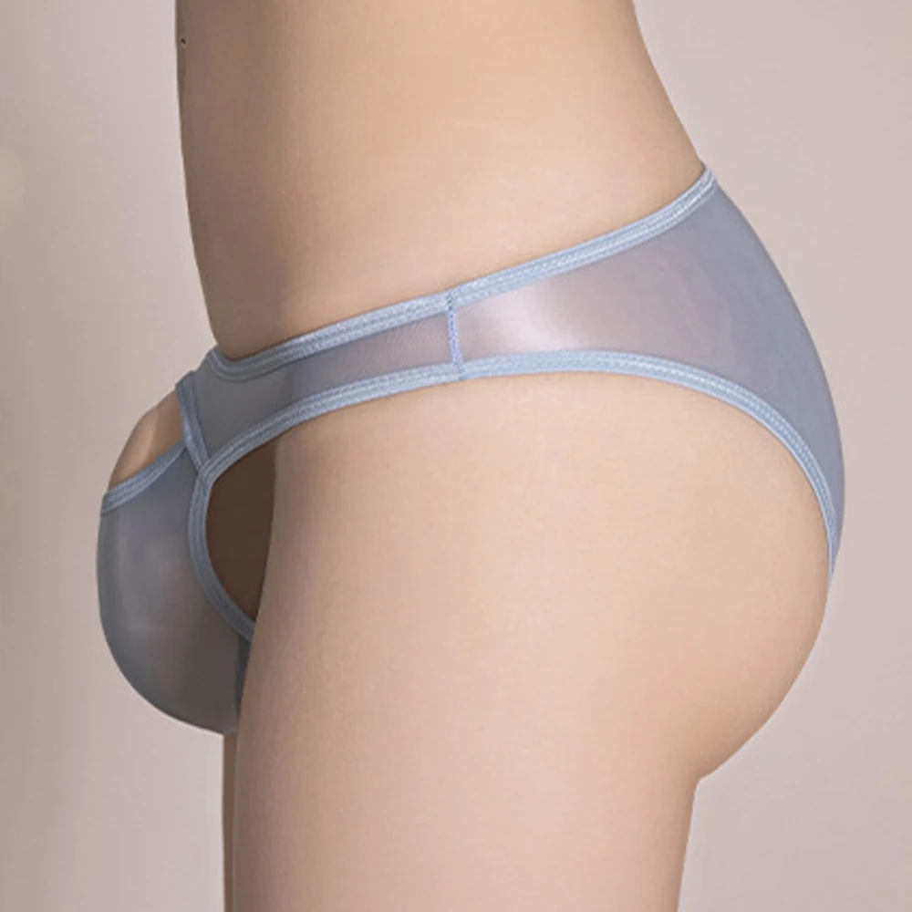 Мужские эластичные трусы, Прозрачное нижнее белье, блестящие глянцевые Трусы-стринги, брифы, сексуальное нижнее белье с открытым передним отверстием