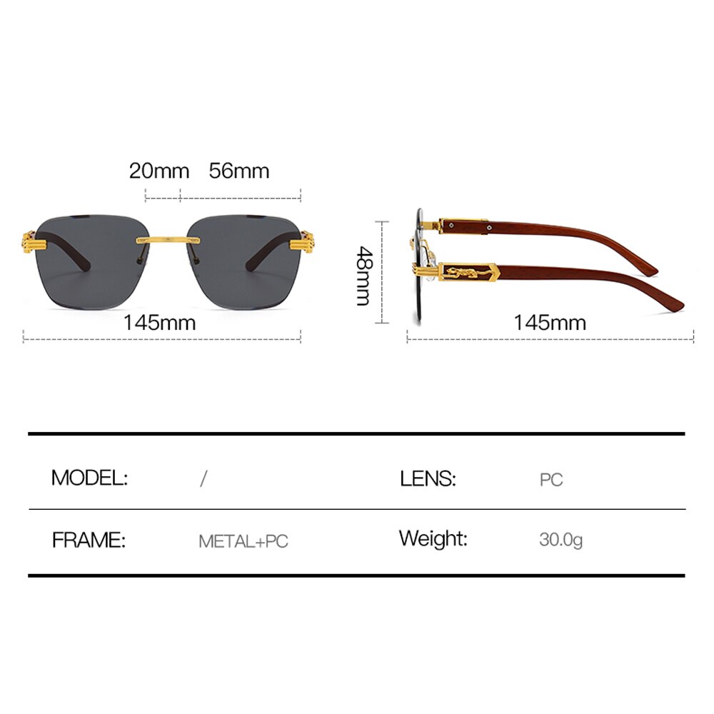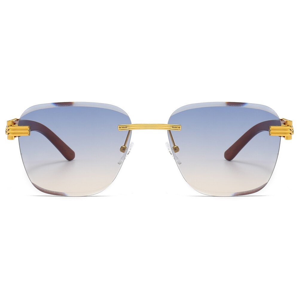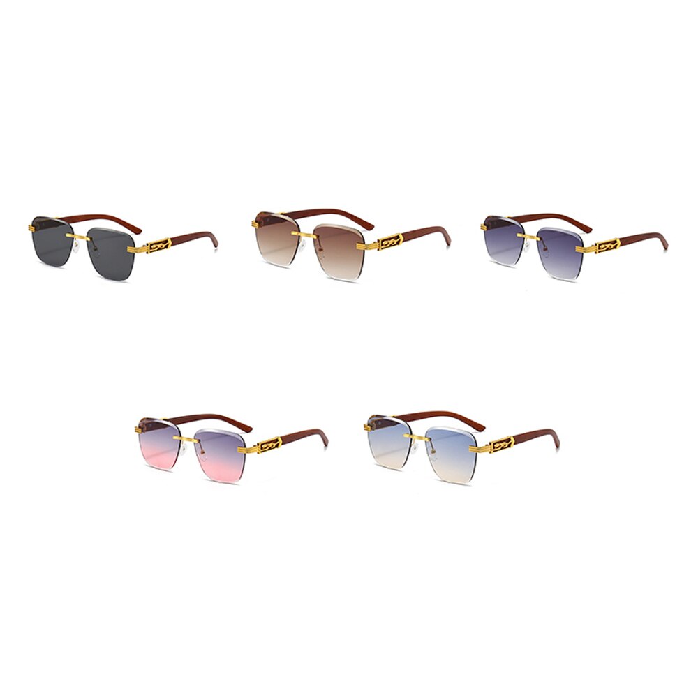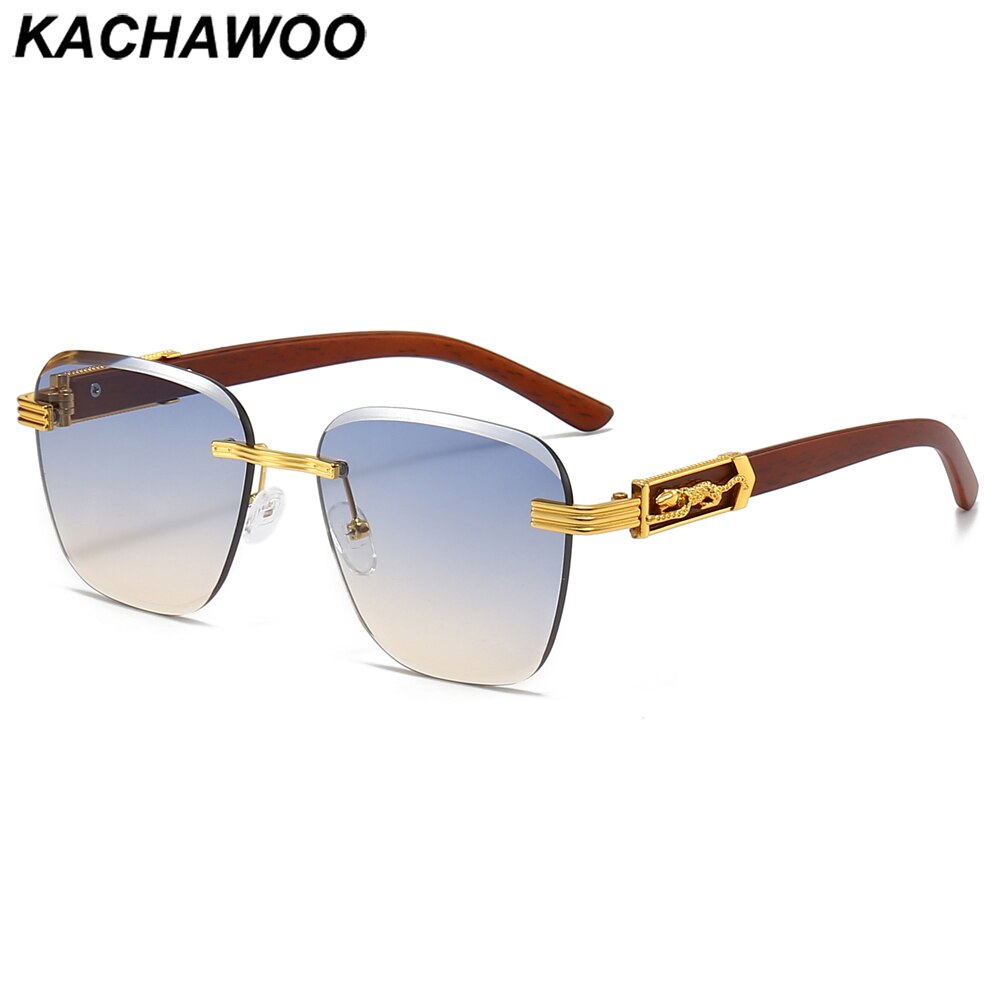 Мужские и женские очки без оправы Kachawoo, солнцезащитные очки в стиле ретро с деревянной текстурой и без оправы, металлические Квадратные Солнцезащитные очки синего и коричневого цвета, Лидер продаж
