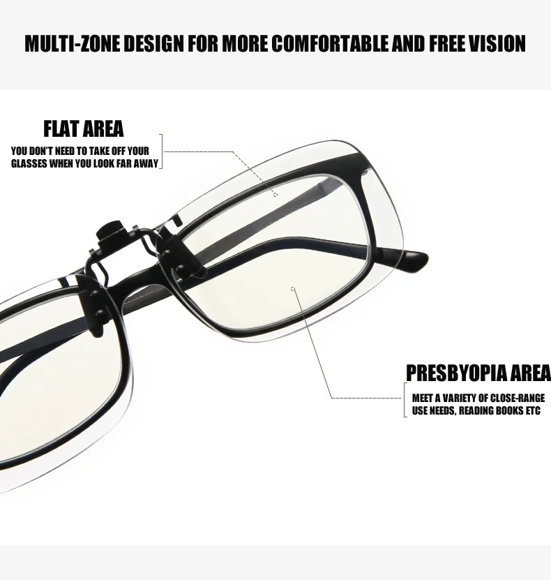 • Подходит для различных потребностей в использовании с близкими, близкими, средними или дальними краями, только один зажим для очков может удовлетворить все потребности.Вам не нужно снимать очки, когда вы смотрите далеко. А также легко видеть близкие и средние вещи ясно