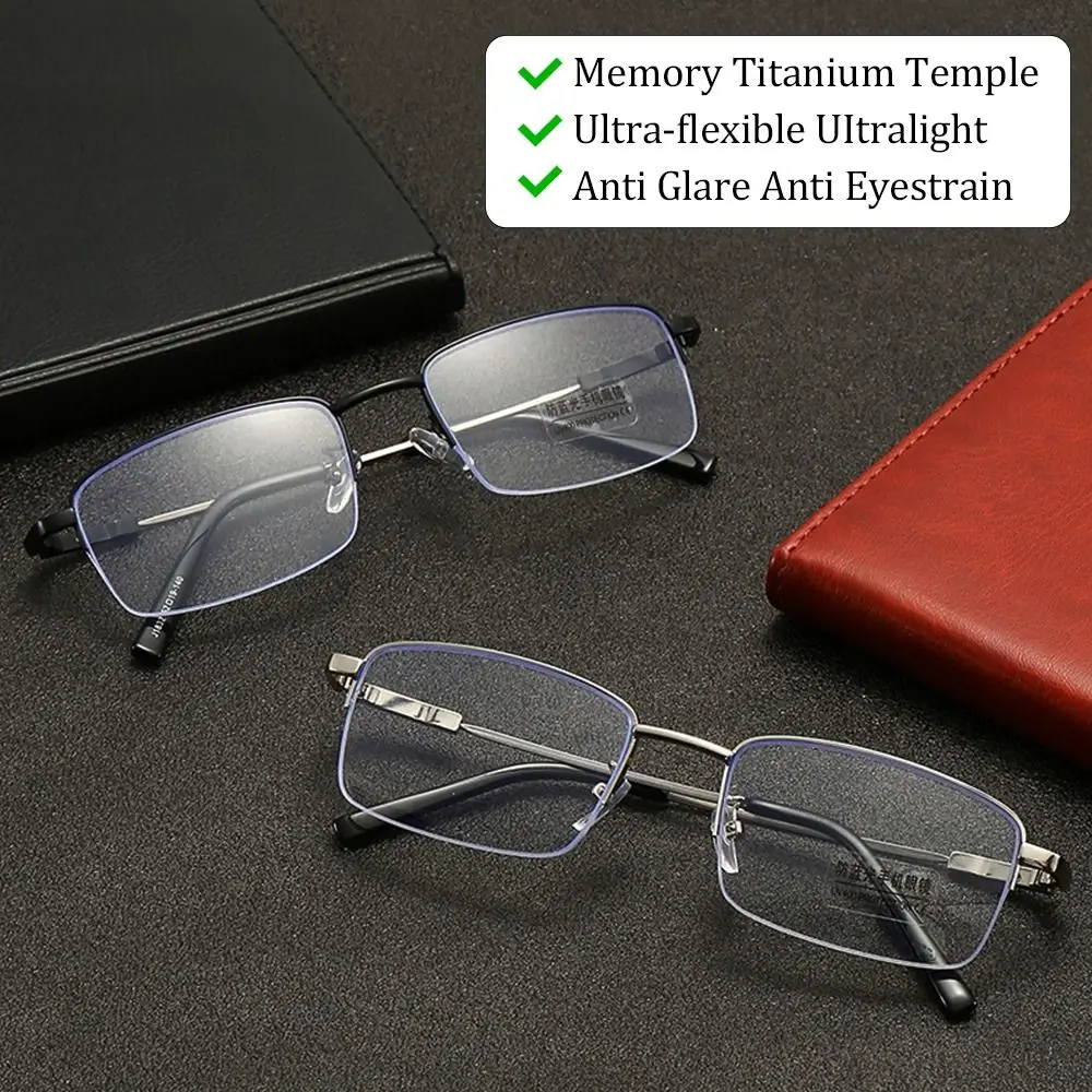 Мужские классические Полуободковые простые титановые очки с эффектом памяти защита для глаз с защитой от сисветильник деловые очки для чтения