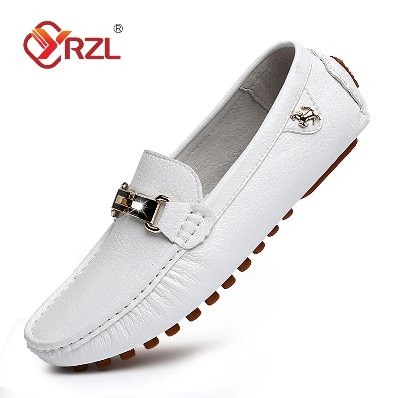 Мужские кожаные лоферы ручной работы YRZL, повседневная обувь для вождения на плоской подошве, слипоны, Мокасины, топ-сайдеры, черные/белые/синие, цвет 37-48