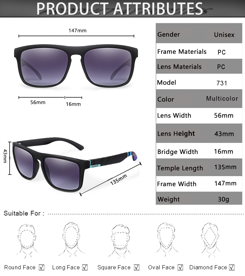 Мужские квадратные солнцезащитные очки с поляризацией, UV400